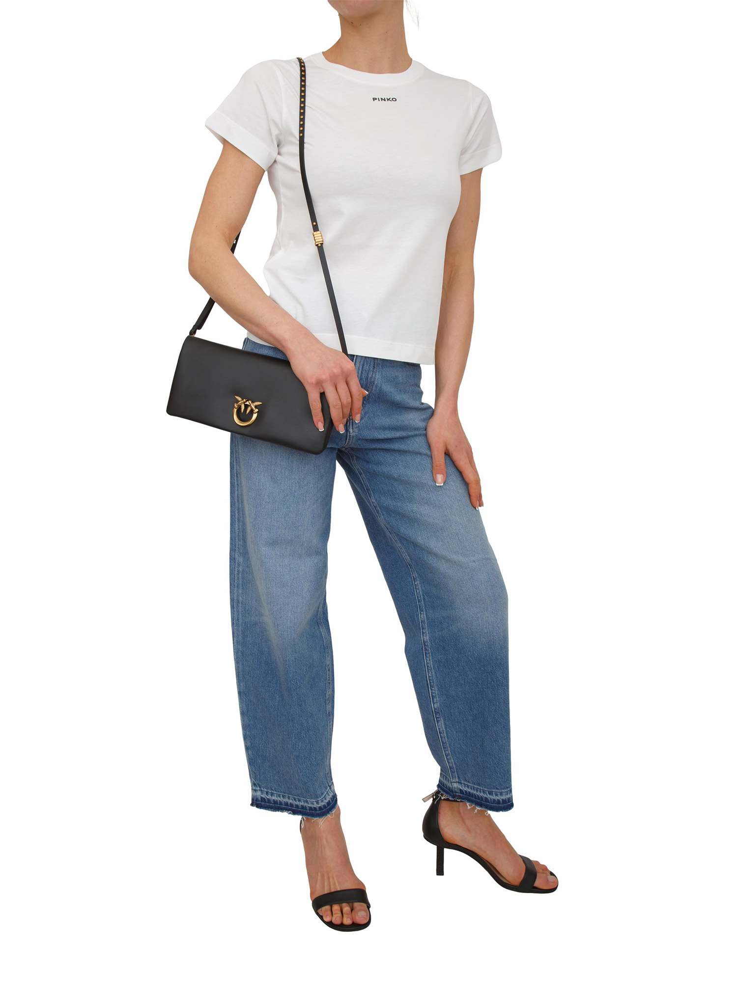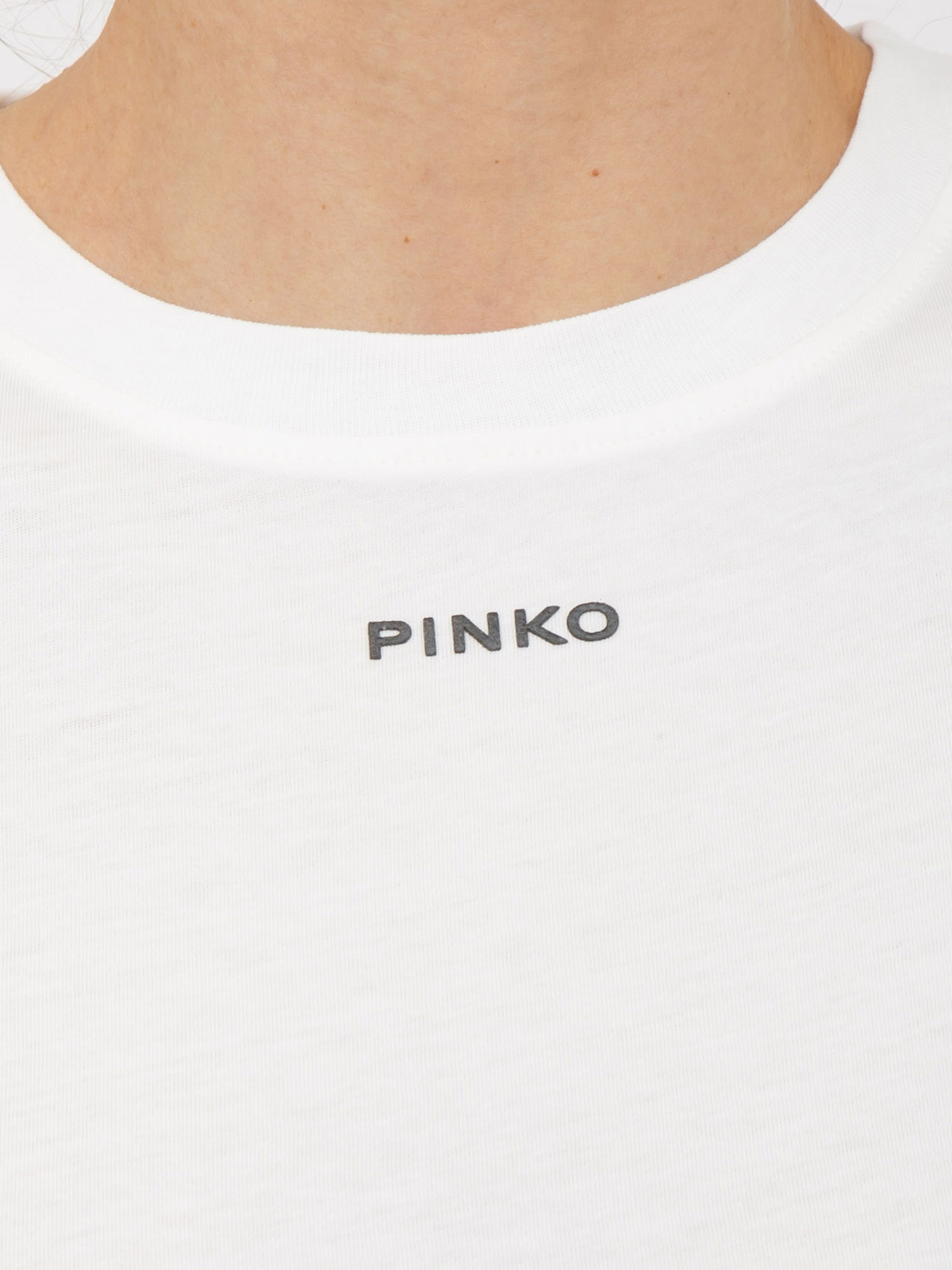 T-shirt "Basico" Pinko realizzato in jersey di cotone con piccolo logo lettering stampato sul davanti. Fit leggermente slime che enfatizza la tua silhouette e femminilità. Questa t-shirt si abbina con facilità ai tuoi pantaloni preferiti, elevando il tuo look in modo semplice, elegante e originale. La modella è alta 1.72 e indossa la taglia XS.