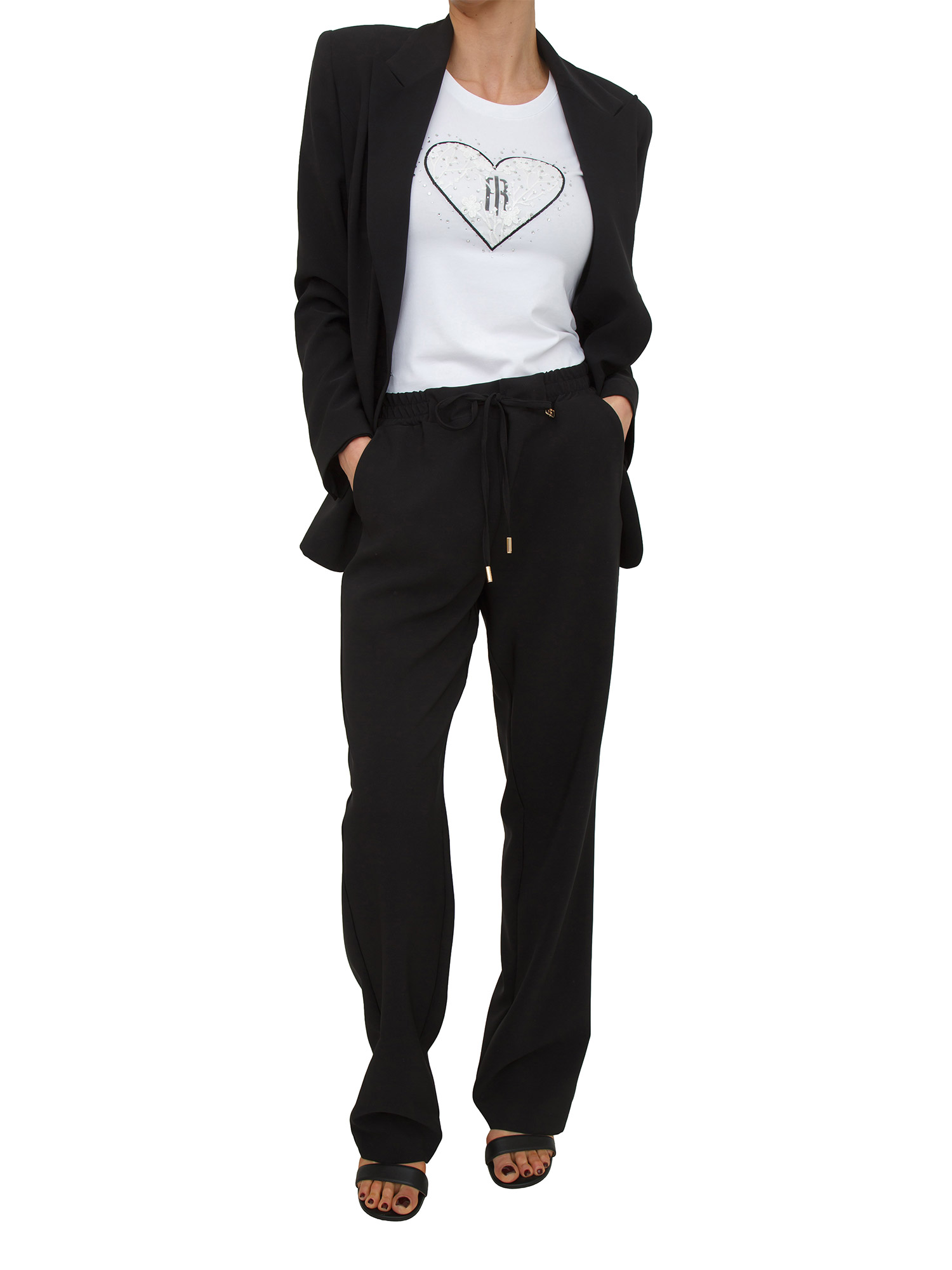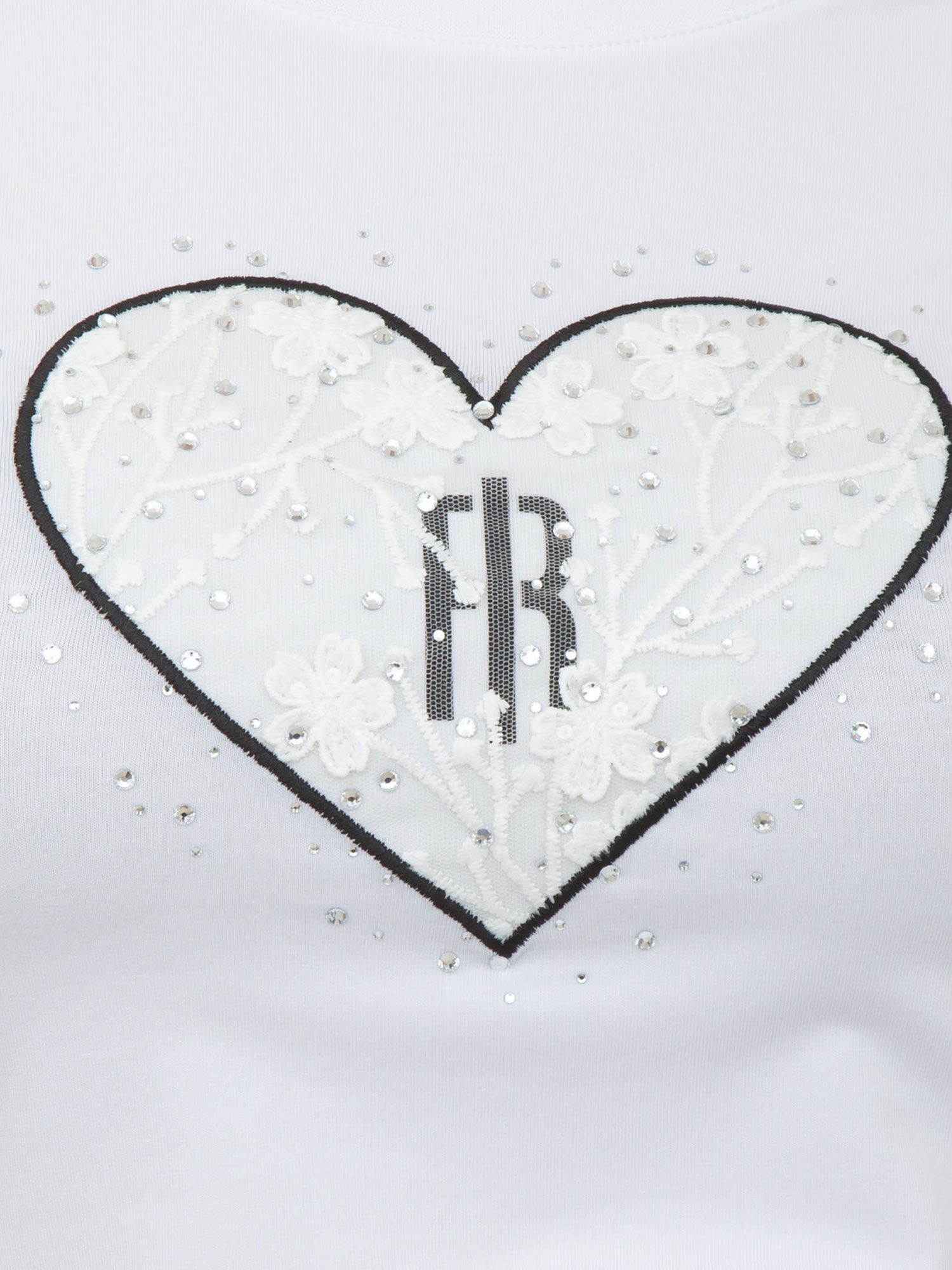 T-shirt bianca Fracomina in cotone con ricamo e strass logo a cuore