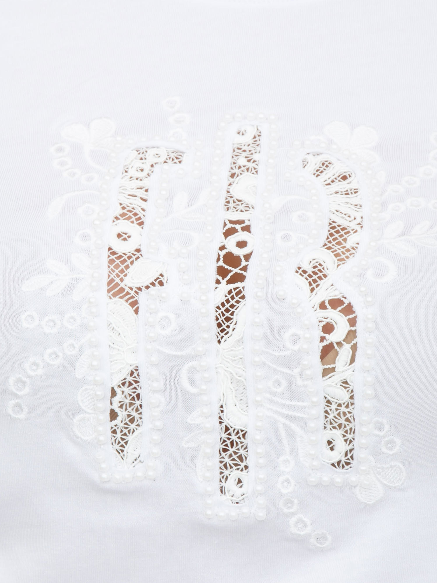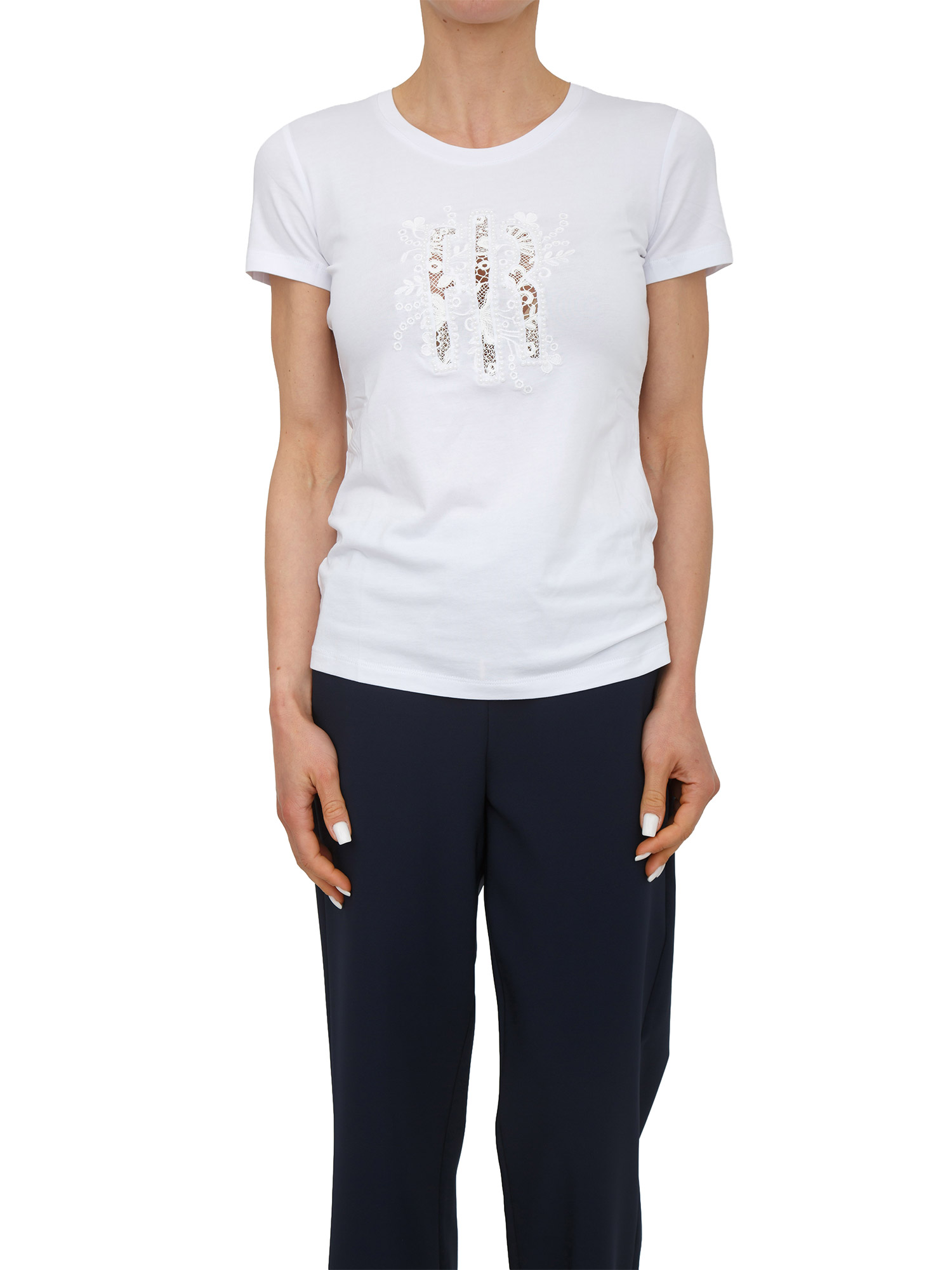 T-shirt bianca Fracomina in misto cotone logo in pizzo