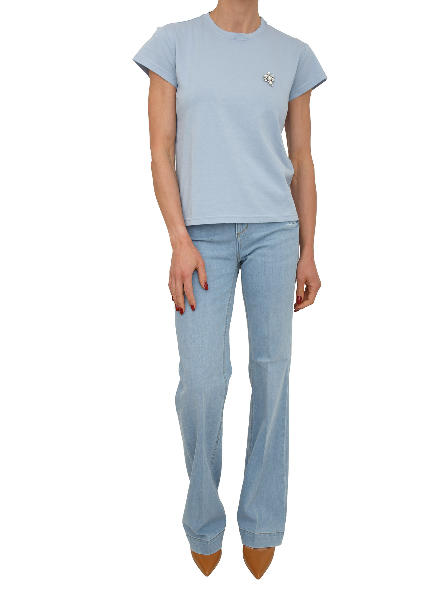 T-shirt "Cono" IBlues in misto cotone azzurra con strass