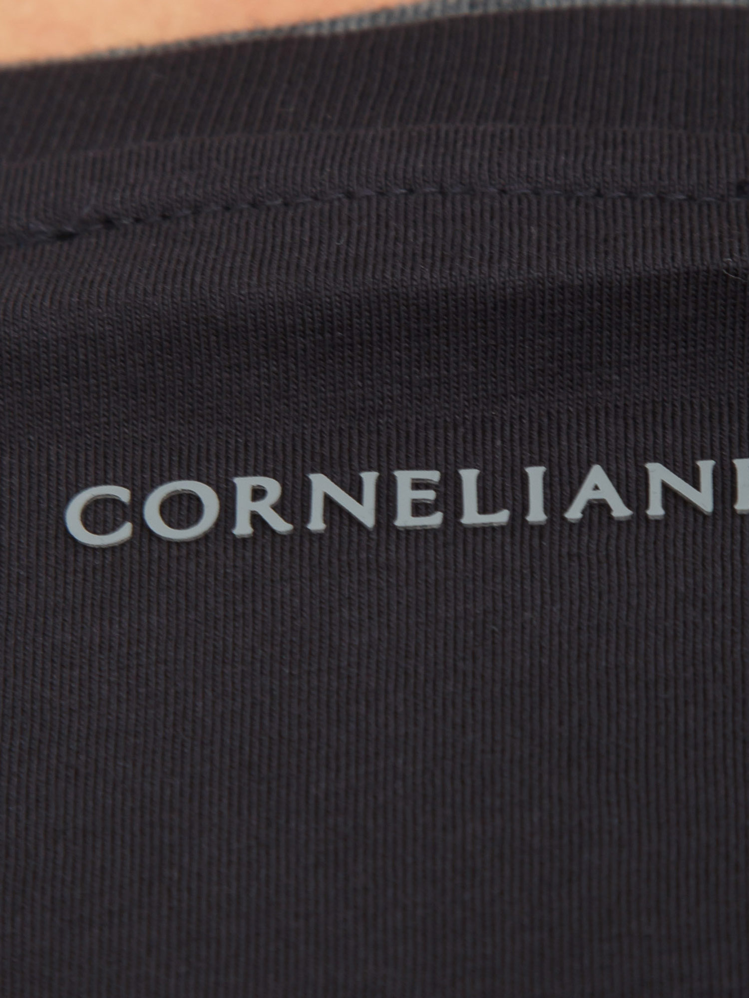 Questa t-shirt girocollo Corneliani a manica corta è realizzata in jersey di puro cotone compact, noto per la sua struttura compatta e resistente che assicura una vestibilità impeccabile. Il doppio collo bicolore aggiunge un dettaglio grafico discreto, perfetto per uno stile essenziale ma curato. Il modello è alto 1.90m e indossa la taglia 50.