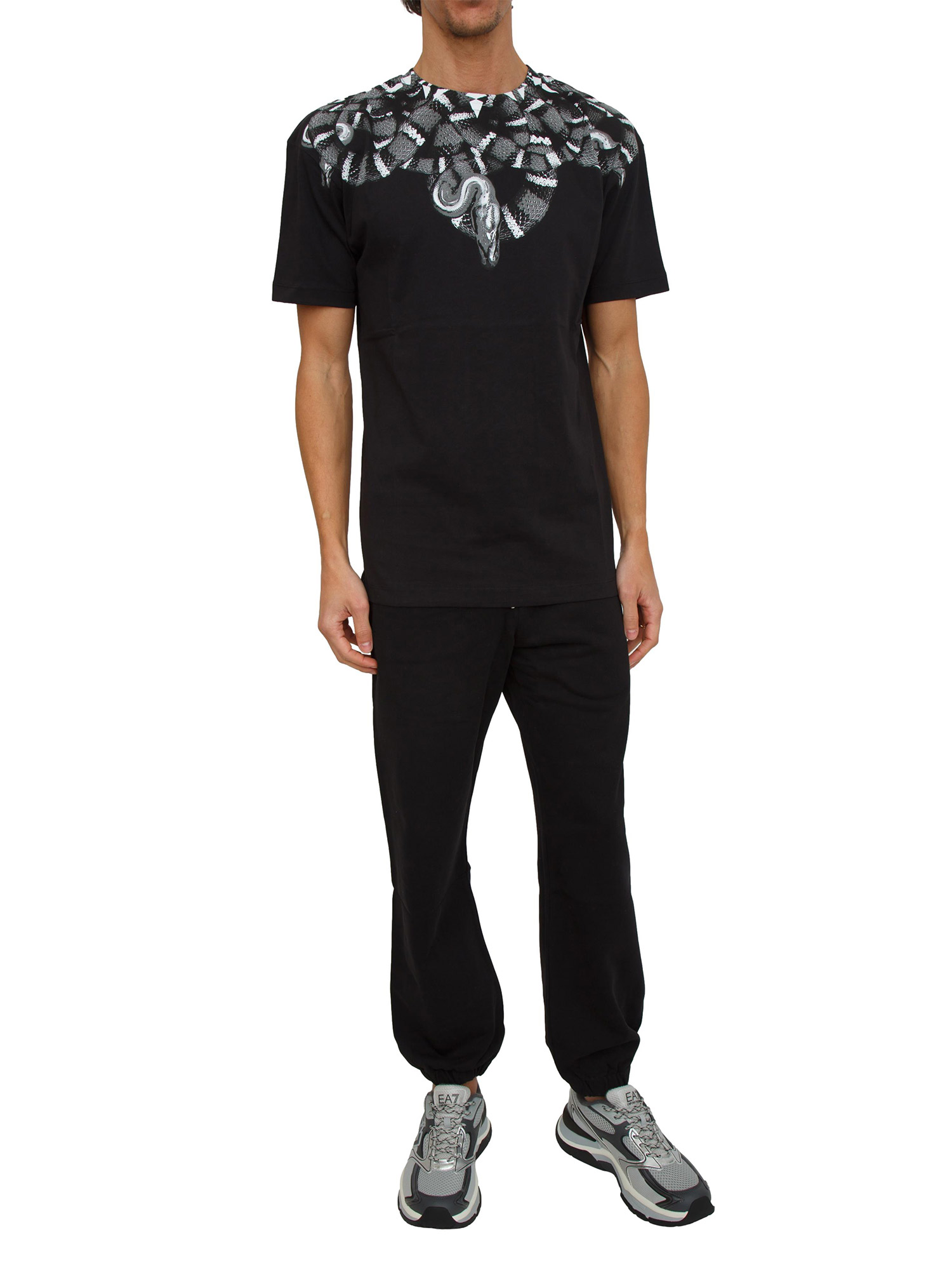 T-shirt uomo County of Milan realizzata in jersey di cotone con fit regolare. Design caratterizzato dalla stampa iconica “Snake” fronte e retro. Bella da indossare sia con la tuta che con un jeans e giubbino di pelle. Il modello è alto 1.90m e indossa la taglia M.