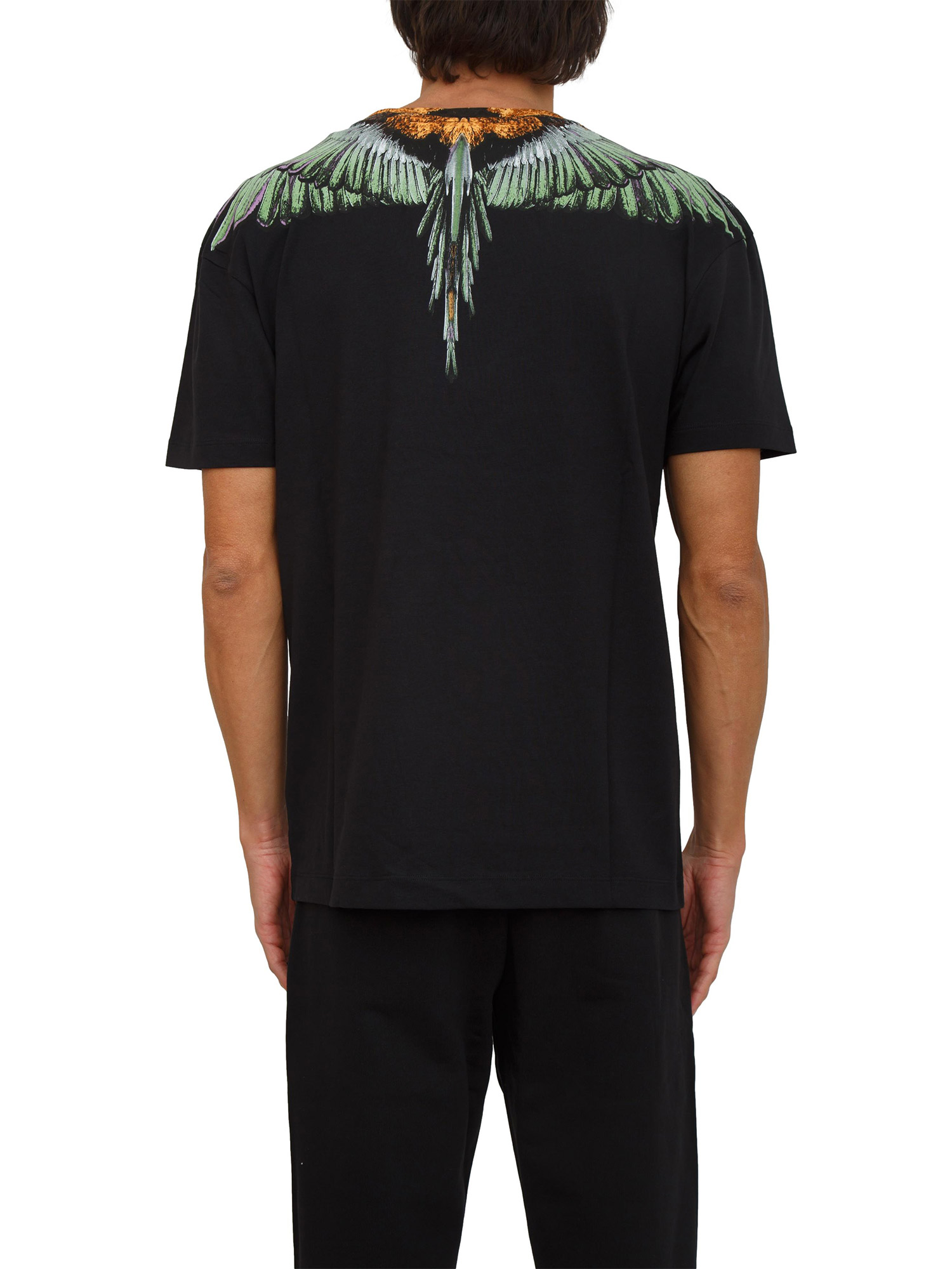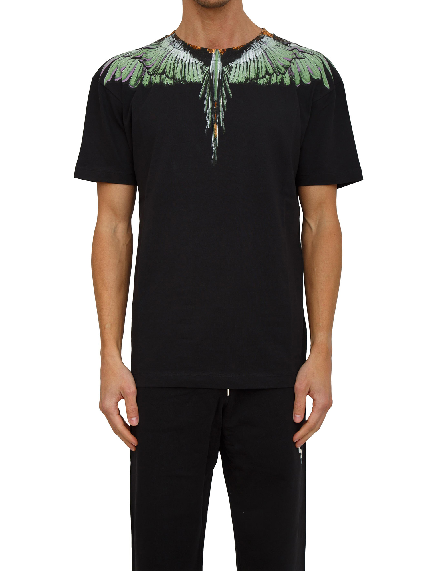 T-shirt uomo County of Milan realizzata in cotone con fit morbido. Caratterizzata dall’iconica stampa aquila multicolore con tonalità verdi a contrasto sulle spalle fronte e retro. Il modello è alto 1.90m e indossa la taglia M.