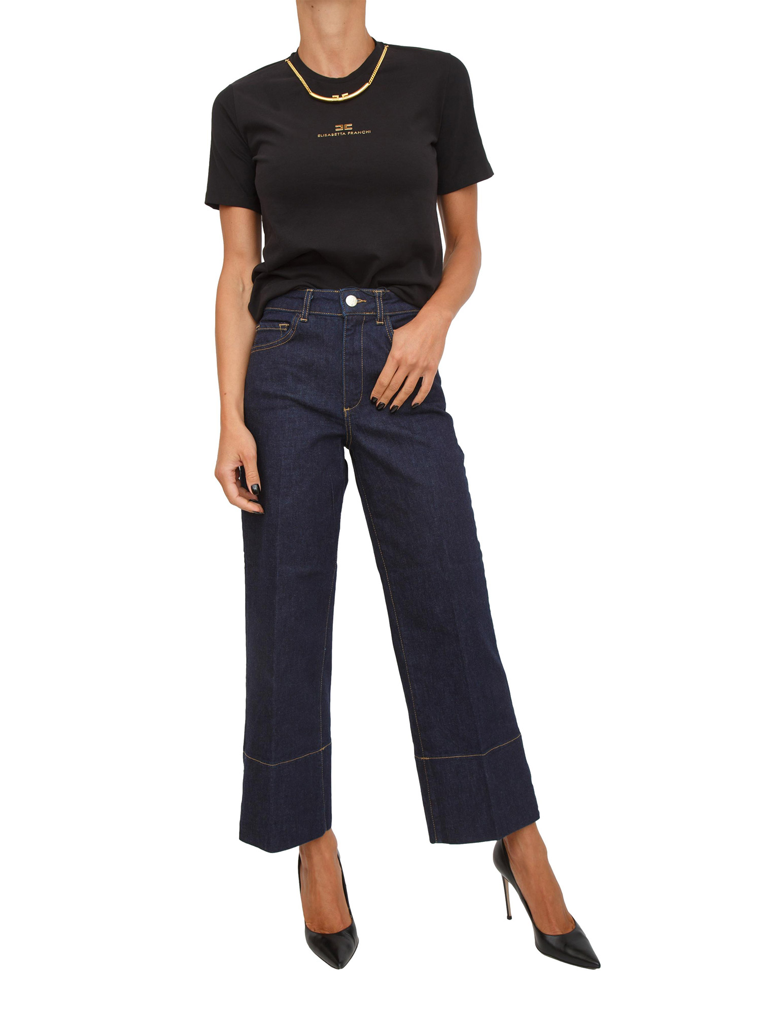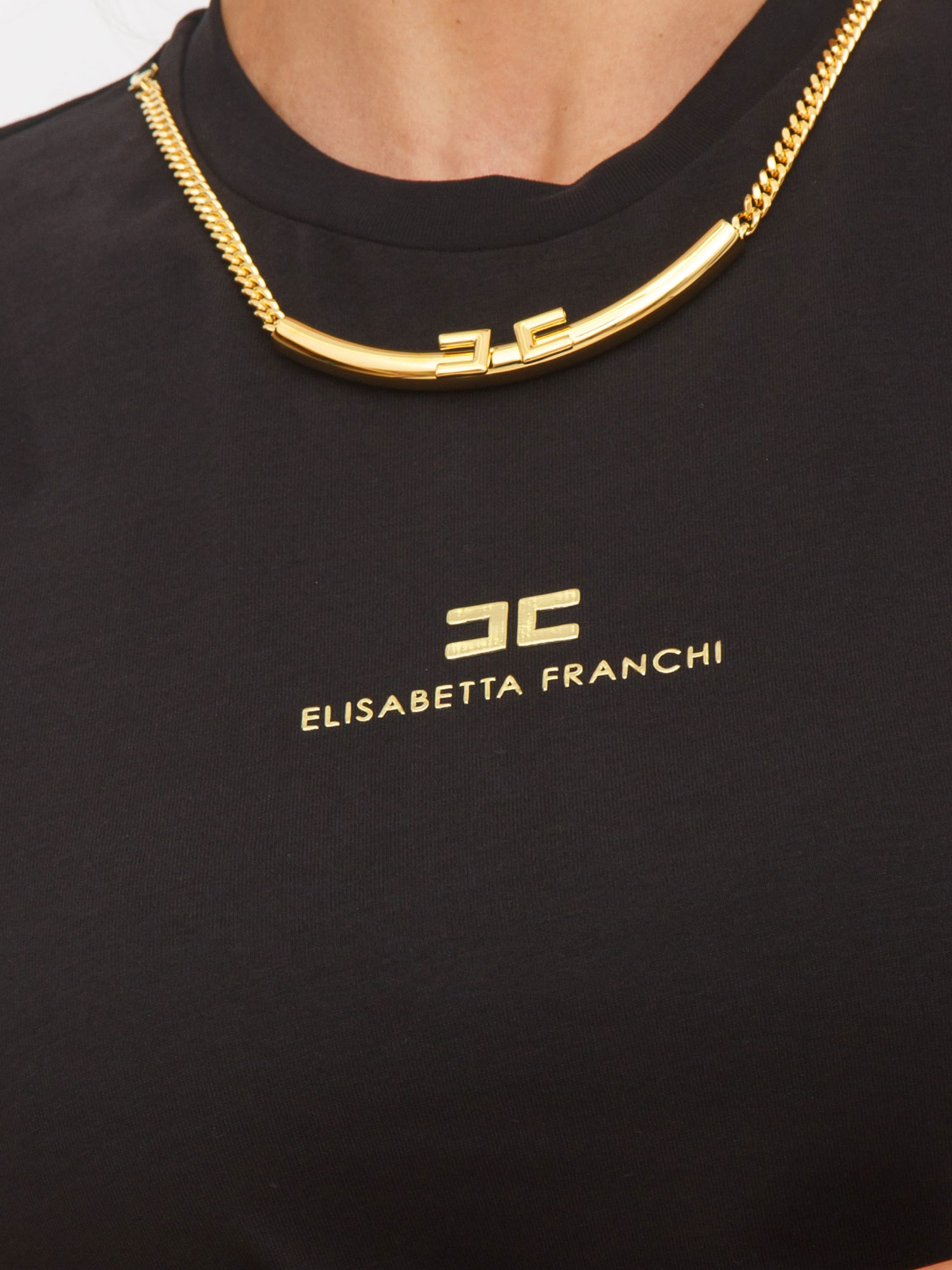 T-shirt Elisabetta Franchi in jersey di cotone nero con collana