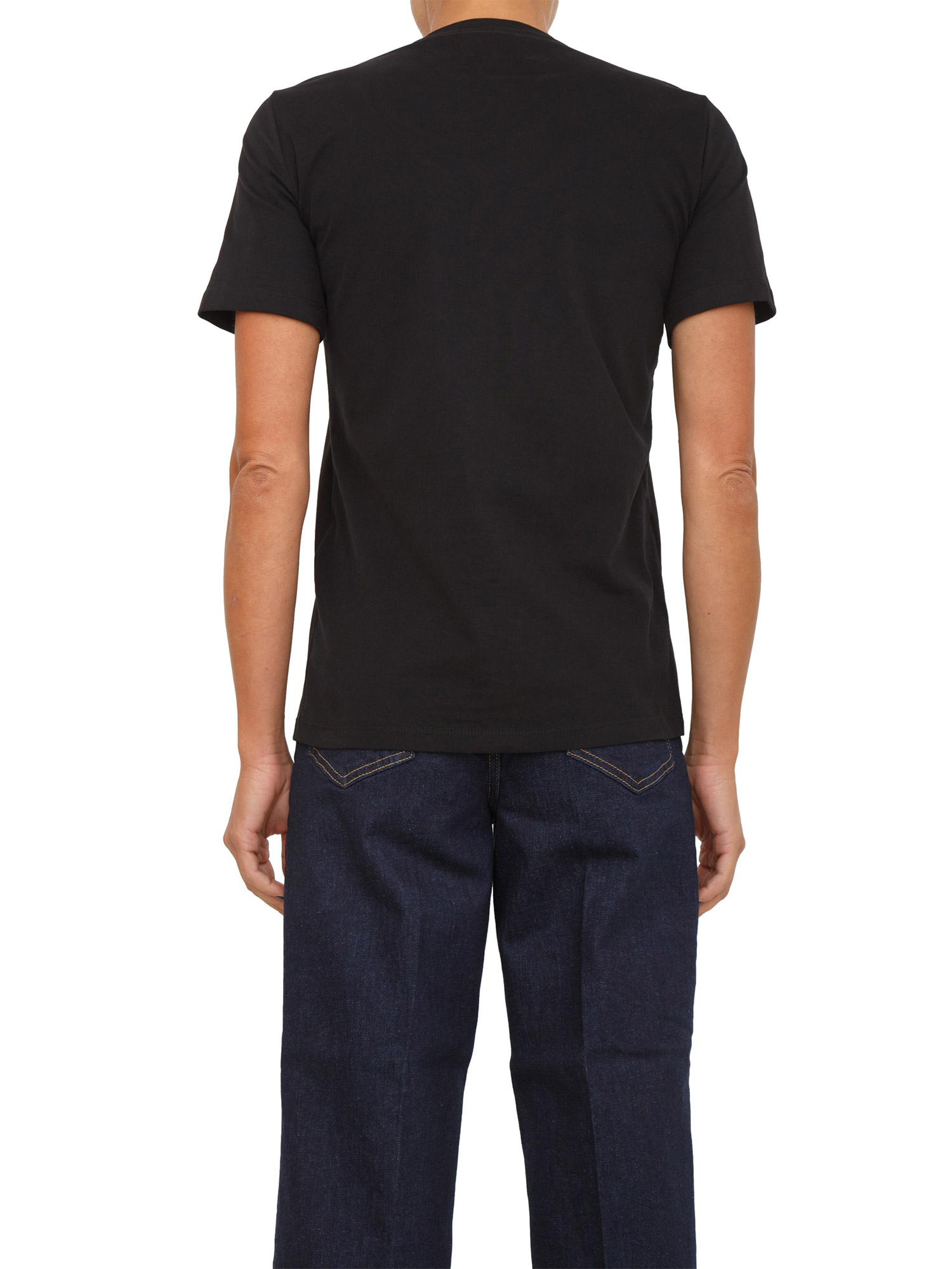 T-shirt a maniche corte Elisabetta Franchi in jersey di cotone. È impreziosita dalla collana amovibile con catena, logo centrale ed elementi tubolari in metallo dorato. Il logo a rilievo regala un'ultima nota di luce. Vestibilità regular. La modella è alta 1.72 e indossa la taglia 38.
