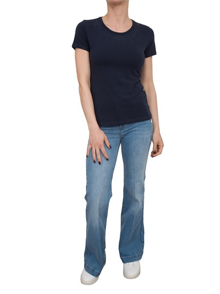 T-shirt regular in jersey di cotone, girocollo con applicazioni gioiello, e con maniche corte.