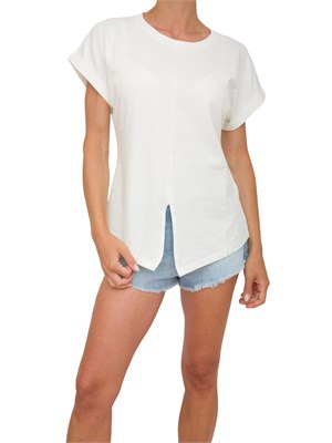 T-shirt rosa Liu Jo donna con spacco davanti e lettering strass dietro