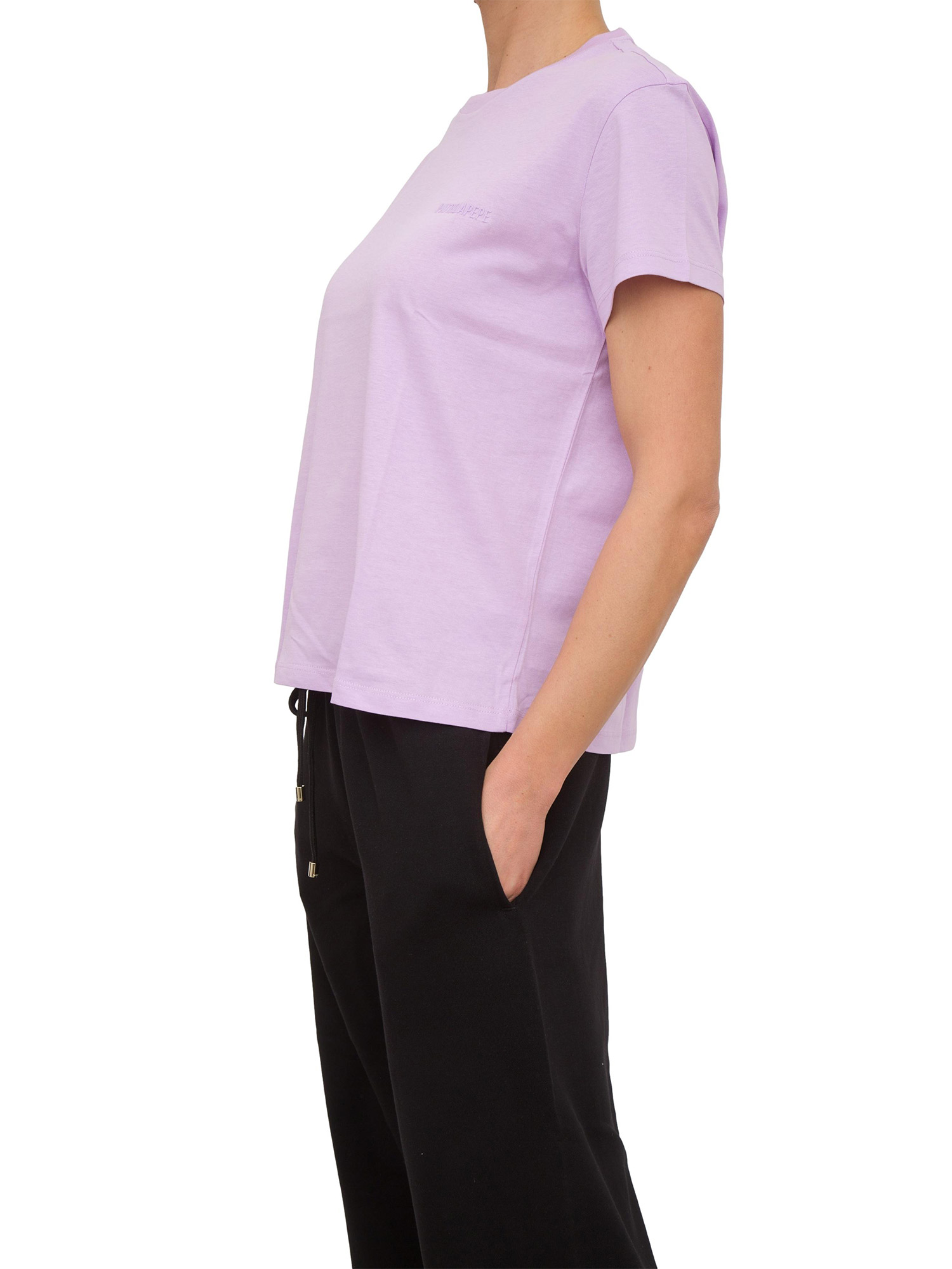 T-shirt Patrizia Pepe realizzata in jersey di cotone organico con vestibilità regolare. Manica corta, scollo tondo e logo Patrizia Pepe gommato tono su tono.La modella è alta 1.72m e indossa la taglia 1.