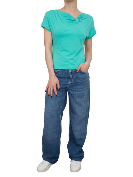 T-shirt Patrizia Pepe realizzata in jersey di cotone organico con vestibilità regolare. Manica corta, scollo tondo e logo Patrizia Pepe gommato tono su tono.La modella è alta 1.72m e indossa la taglia 1.