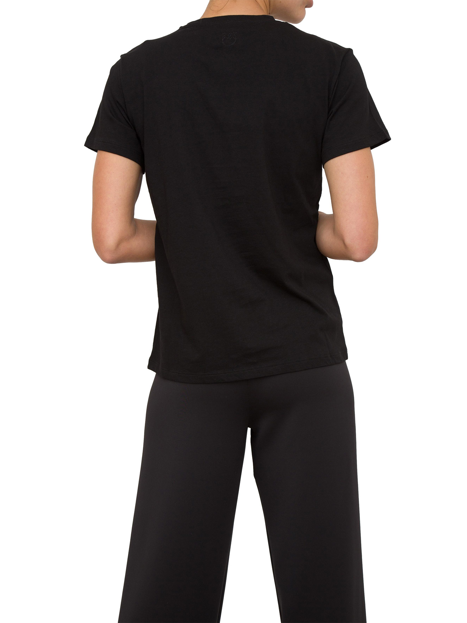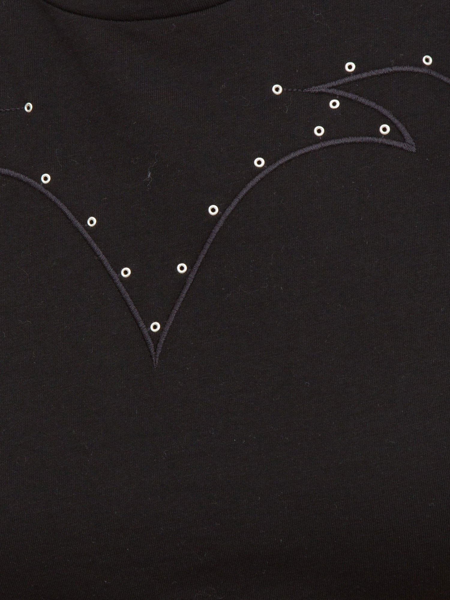 T-shirt a maniche corte in jersey di cotone con ricamo tribale stile rodeo davanti. Personalizzazione con logo Love Birds sul retro del collo.La modella è alta 1.72 e indossa la taglia S.