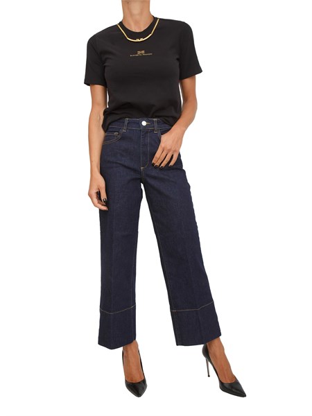 T-shirt Twinset in jersey di cotone nero con stampa flock Oval T