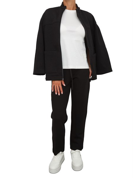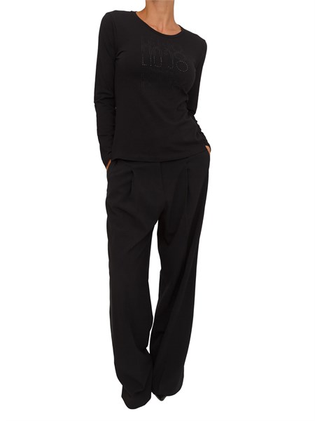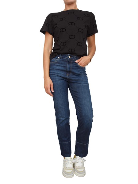 T-shirt EA7 Emporio Armani in cotone nero con maxi logo paillettes tono su tono
