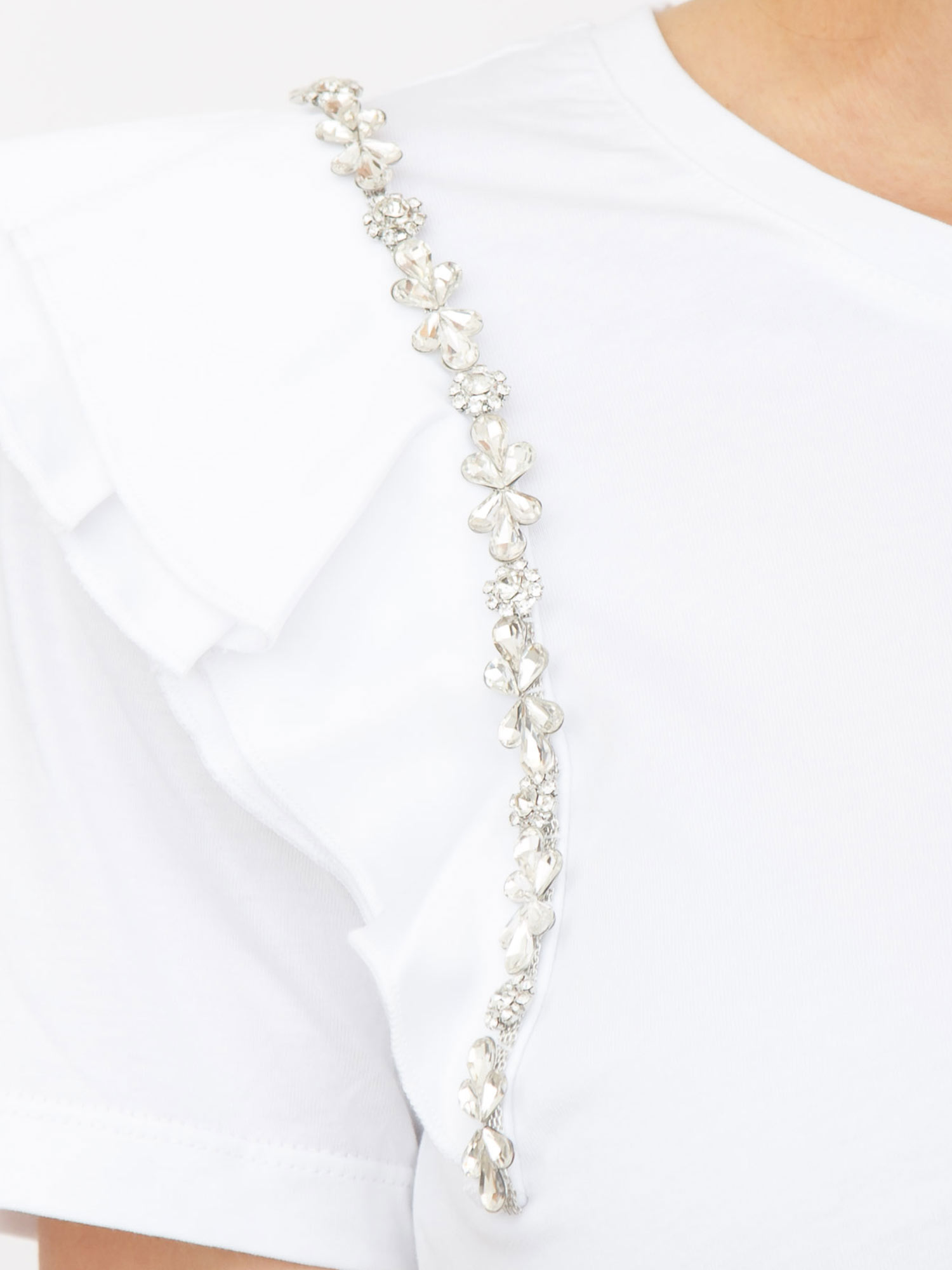 T-shirt Fracomina in cotone bianco maniche rouches e cristalli