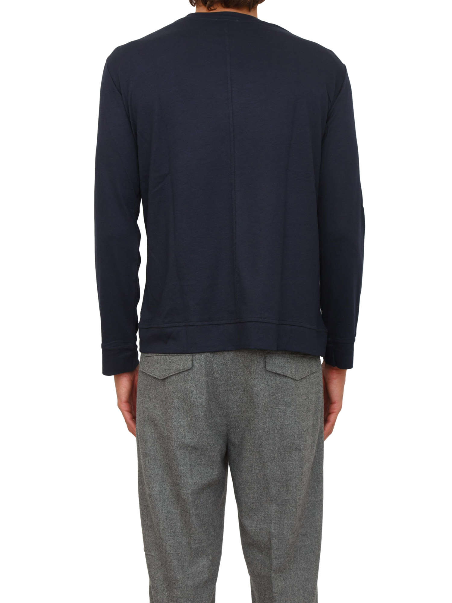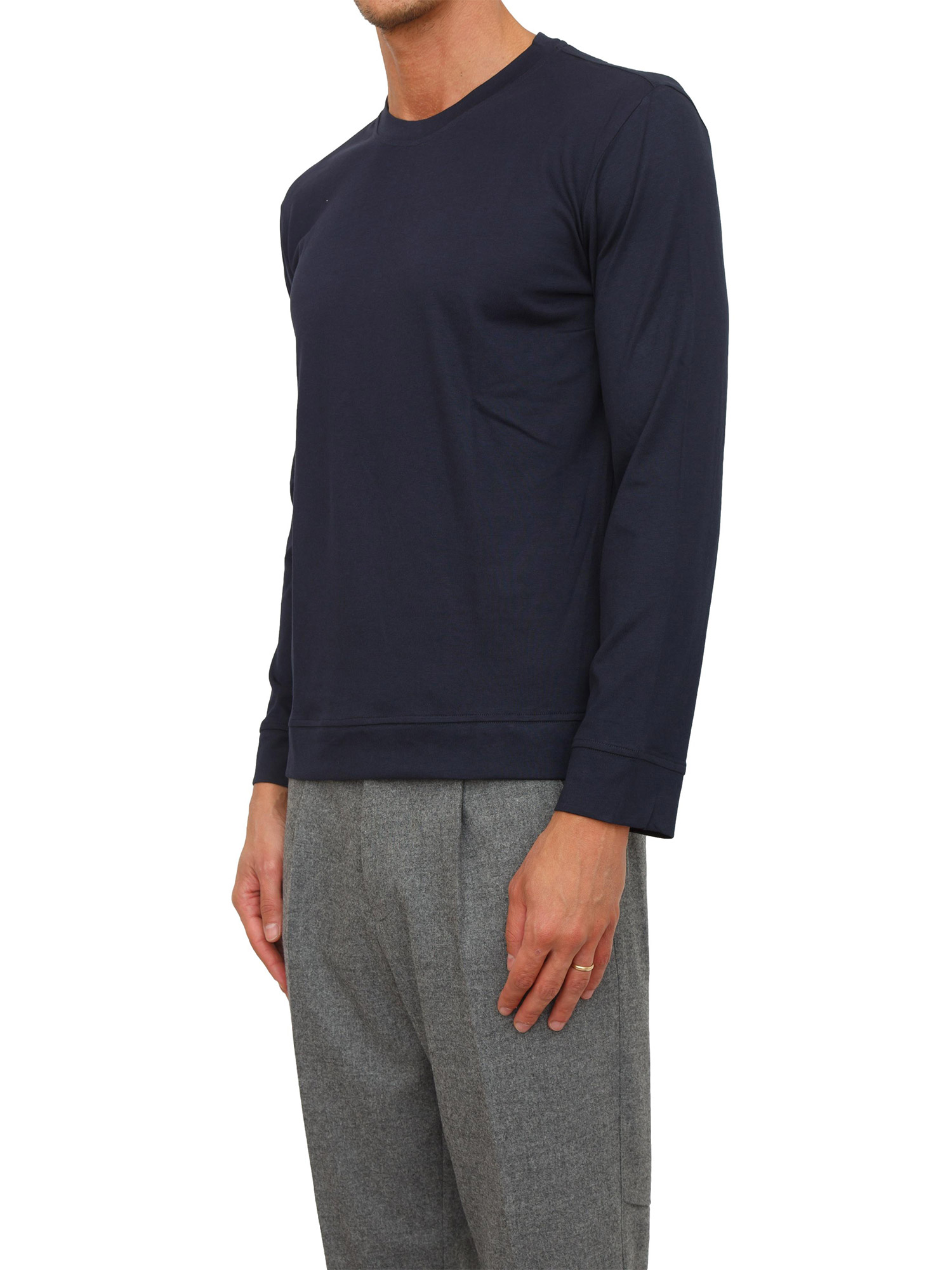 T-shirt girocollo Paolo Pecora a manica lunga in morbido jersey di cotone bielastico. Il design minimal con linea pulita garantisce comfort, traspirabilità e una vestibilità regolare. Un capo essenziale e versatile, perfetto da indossare in ogni occasione. Il modello è alto 1.90m e indossa la taglia L.