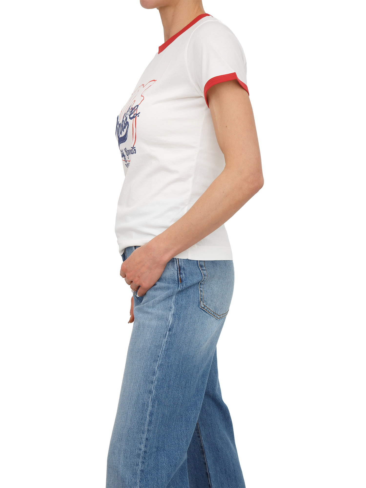 T-shirt Imperia Pinko in jersey di puro cotone con stampa logata e bordo a contrasto su collo e fondo manica. Questa t-shirt si abbina con facilità ai tuoi pantaloni preferiti, elevando il tuo look in modo semplice, elegante e originale. La modella è alta 1.72 e indossa la taglia S.