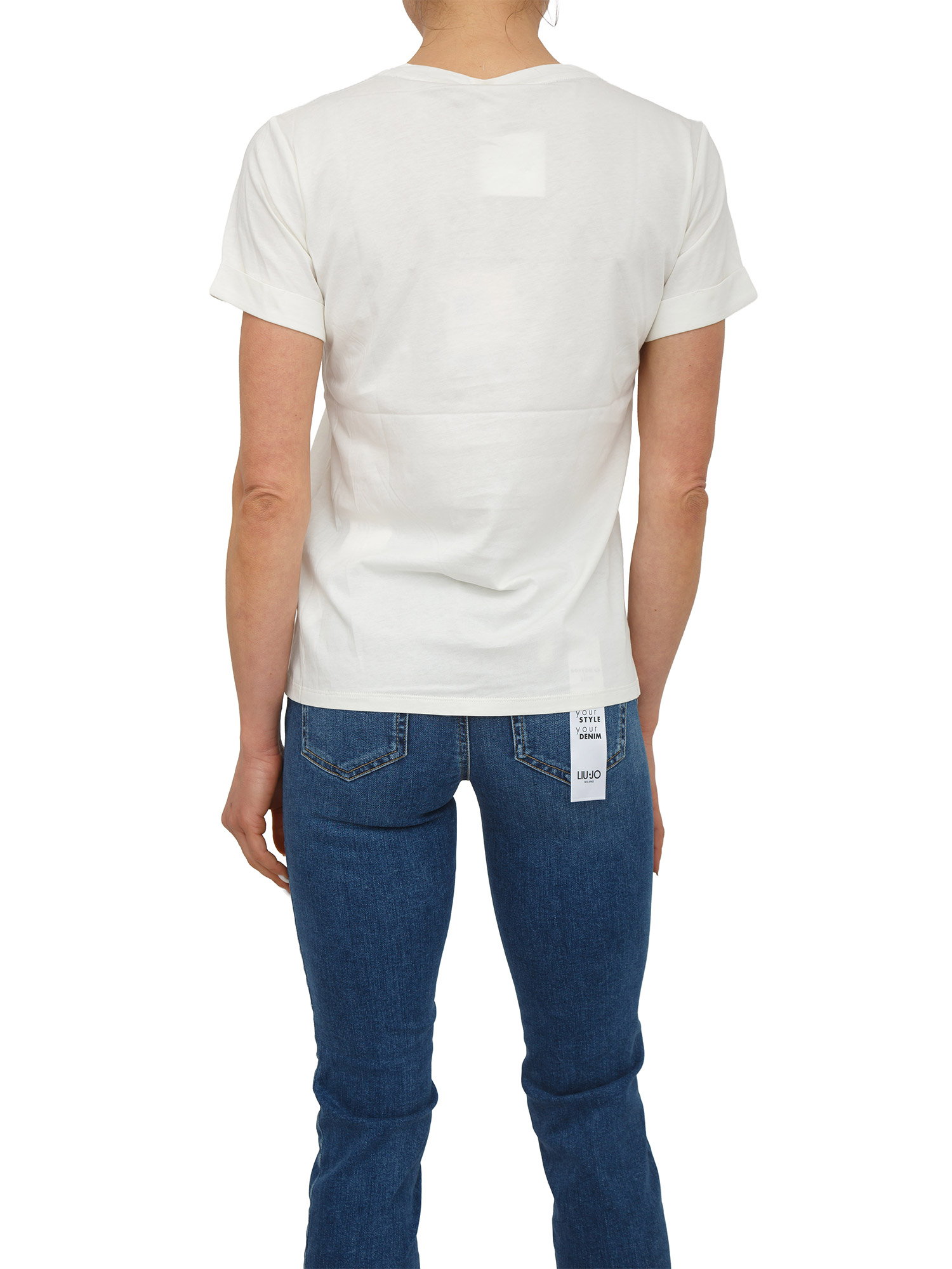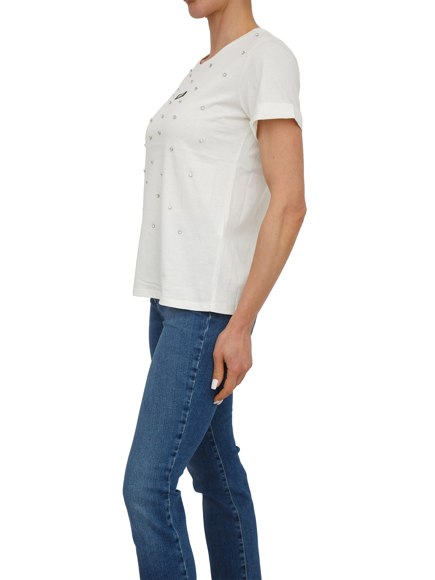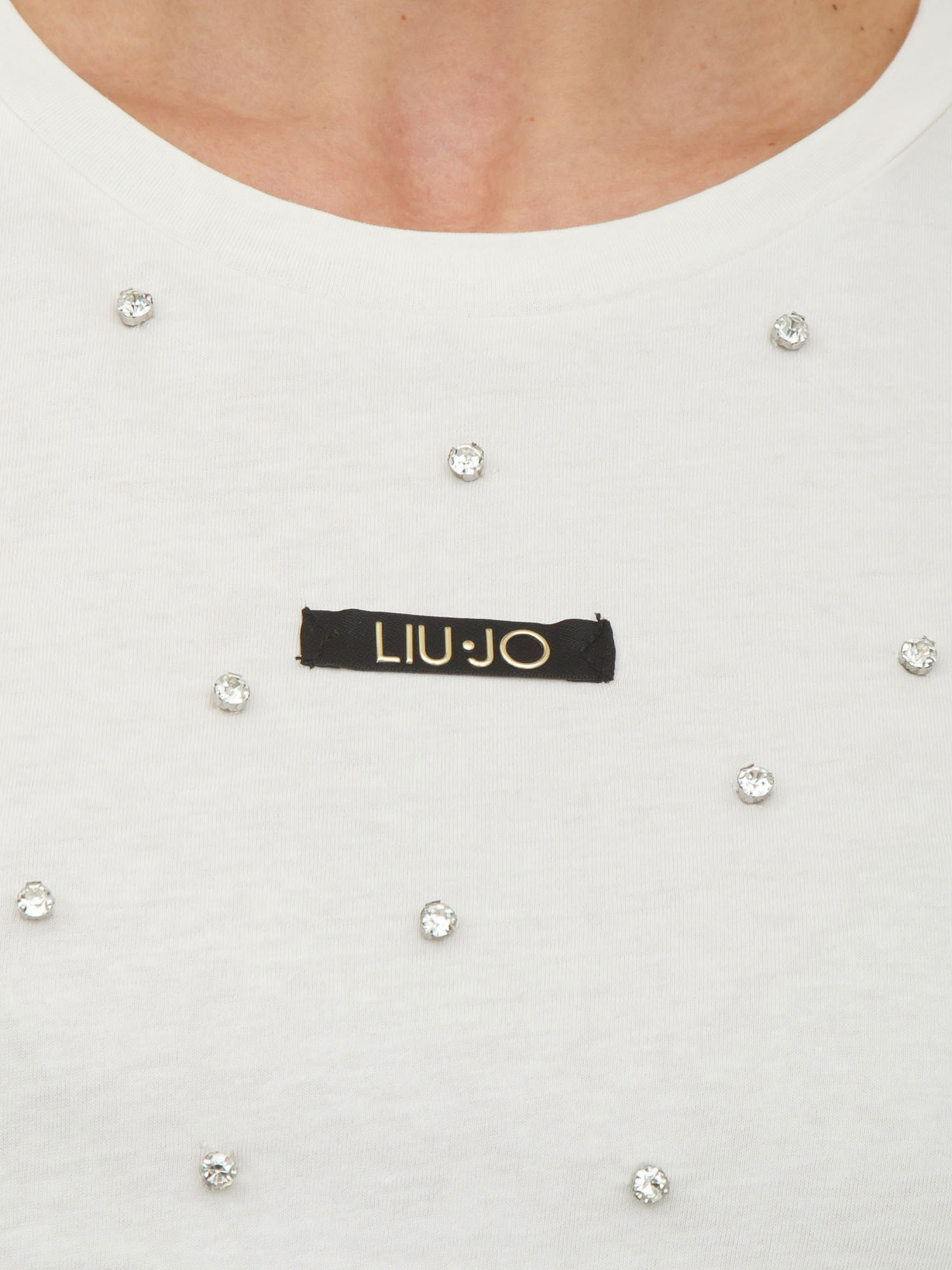 T-shirt Liu Jo donna in cotone bianco panna con cristalli