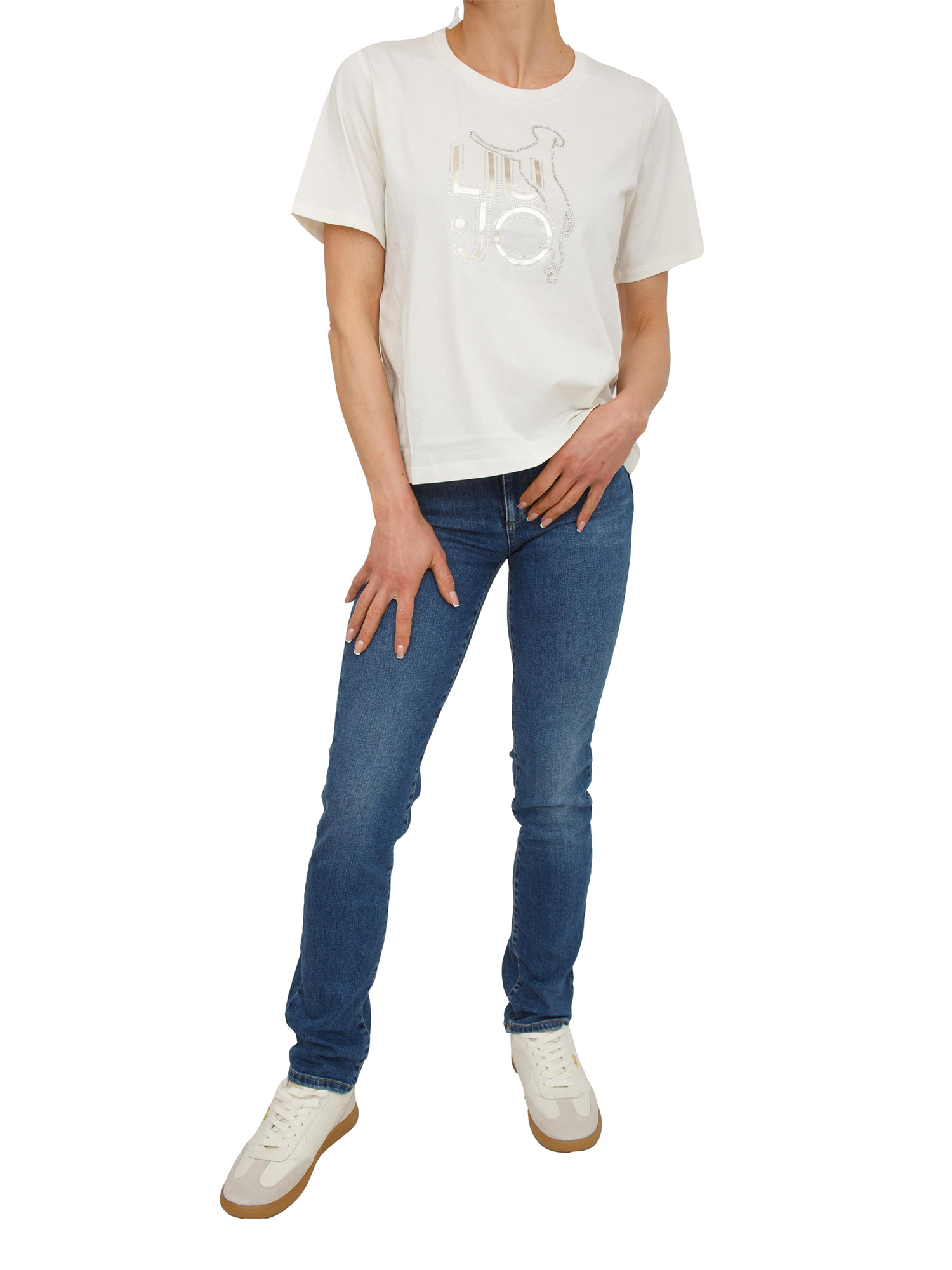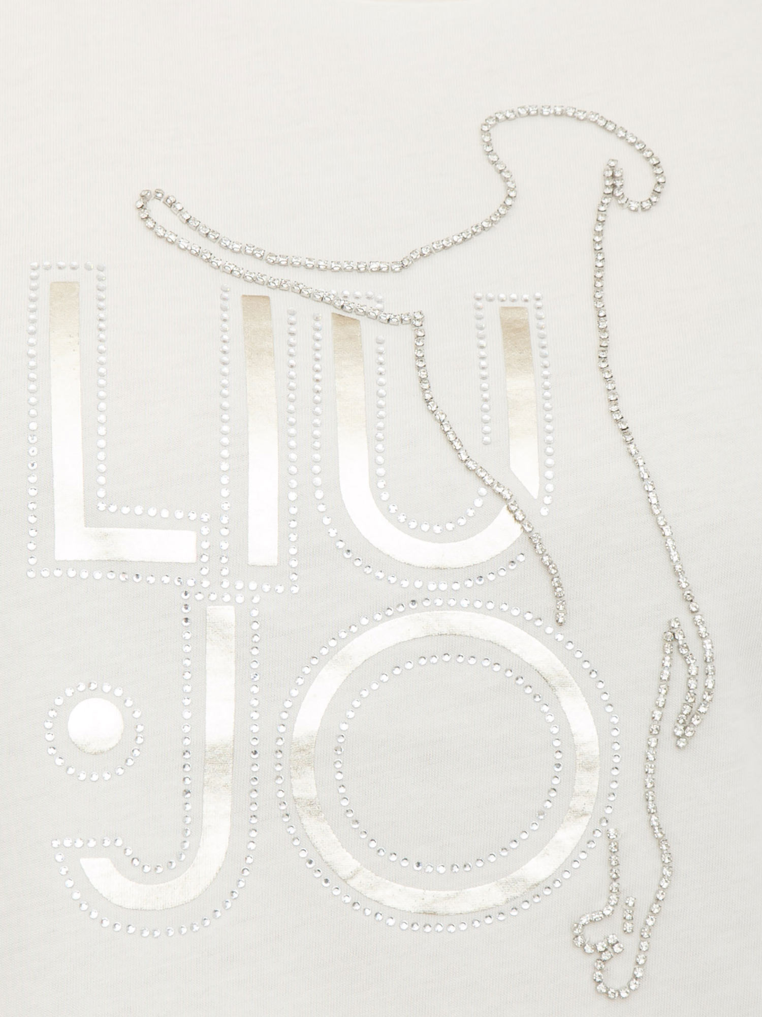 T-shirt Liu Jo donna in cotone bianco panna con logo e strass