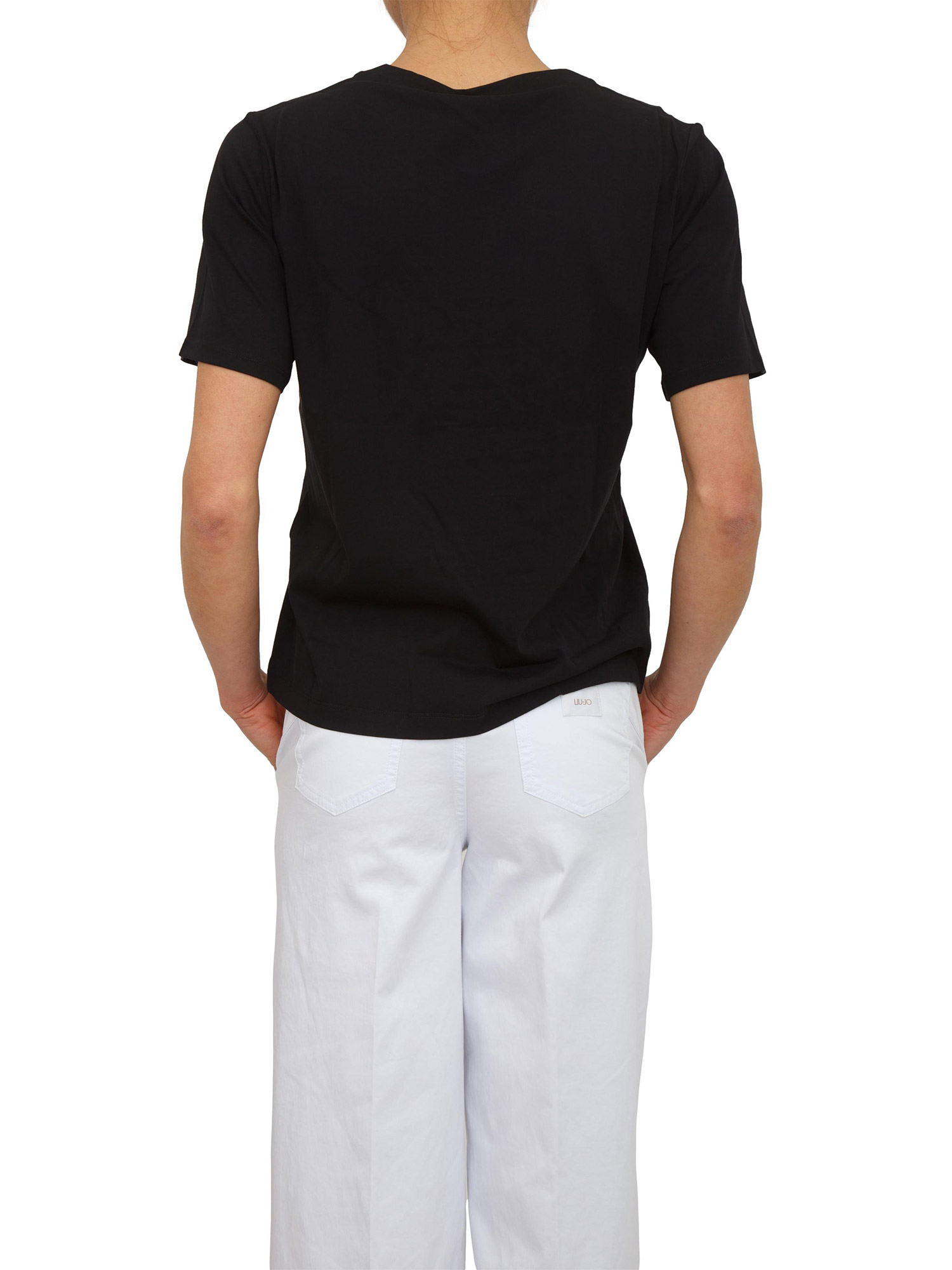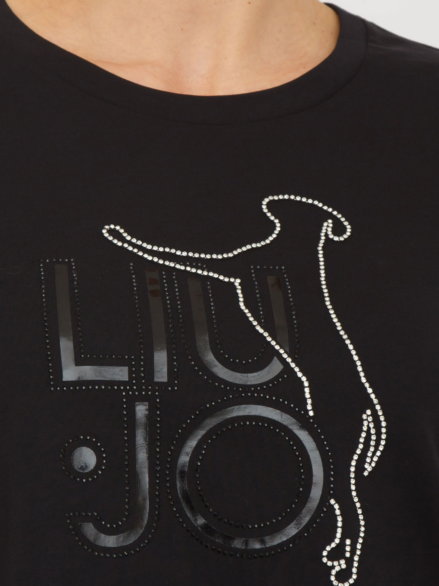 T-shirt Liu Jo donna in cotone nero con logo e strass