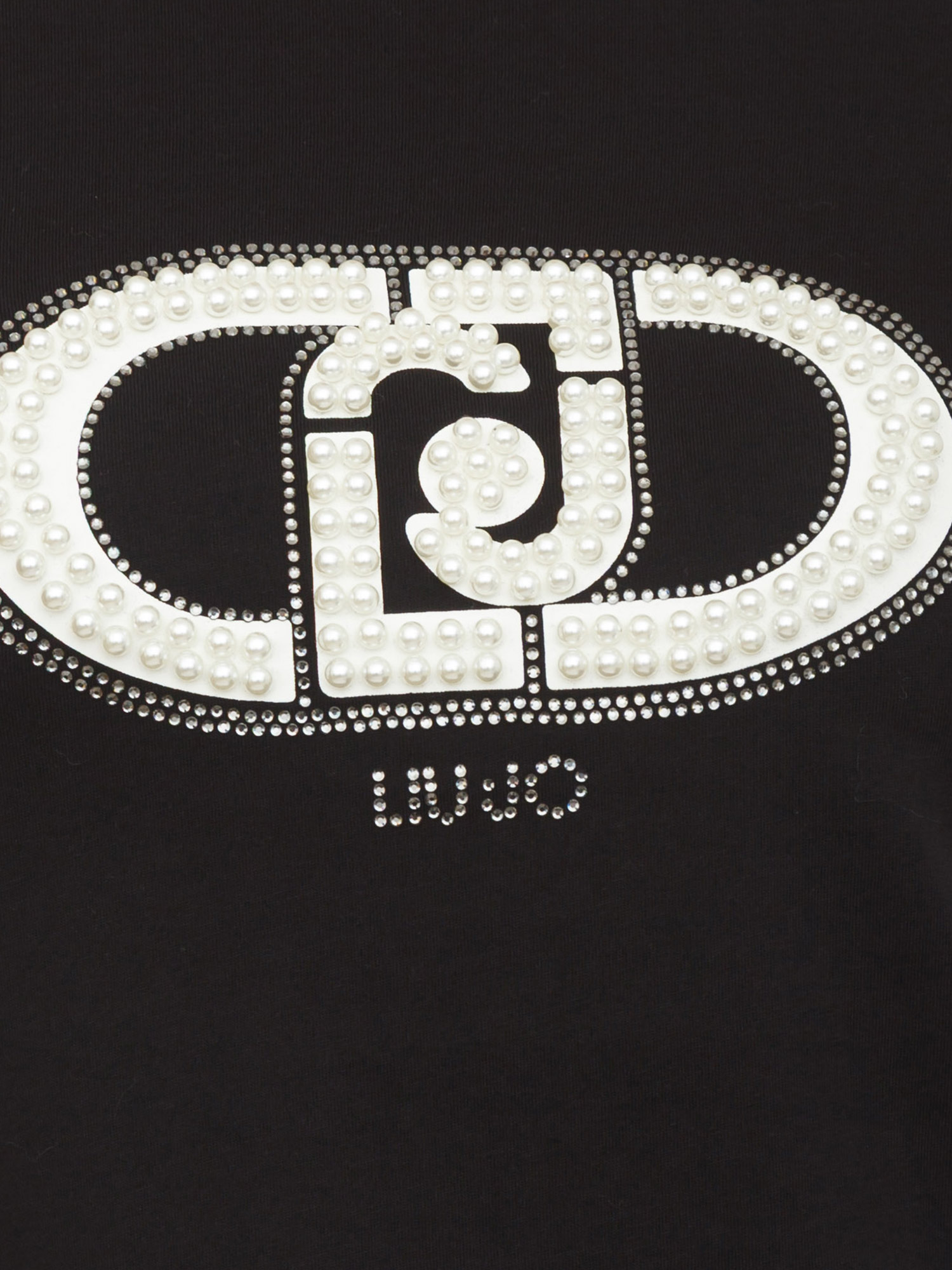 T-shirt Liu Jo donna in cotone nero con logo perle e strass