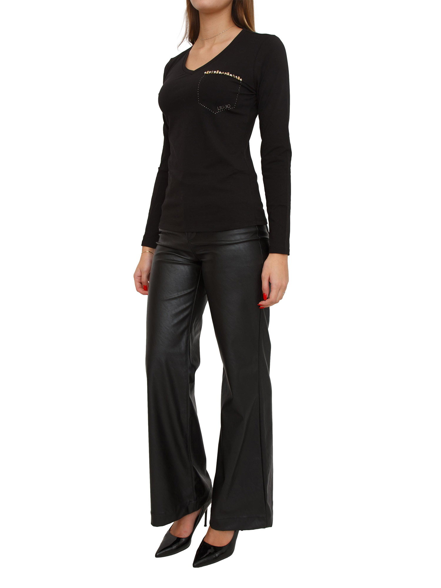 T-shirt Liu Jo donna in cotone nero con taschino strass