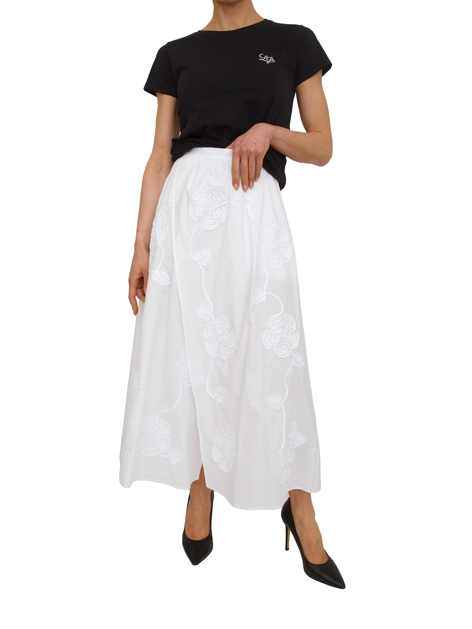 T-shirt Liu Jo donna realizzata in jersey di cotone con girocollo, maniche corte e strass applicati con logo. Un passepartout del tuo armadio da poter indossare su qualsiasi outfit. La modella è alta 1.72 e indossa la taglia XS.