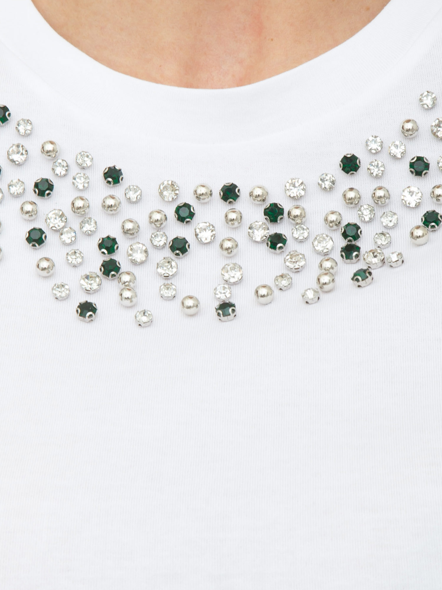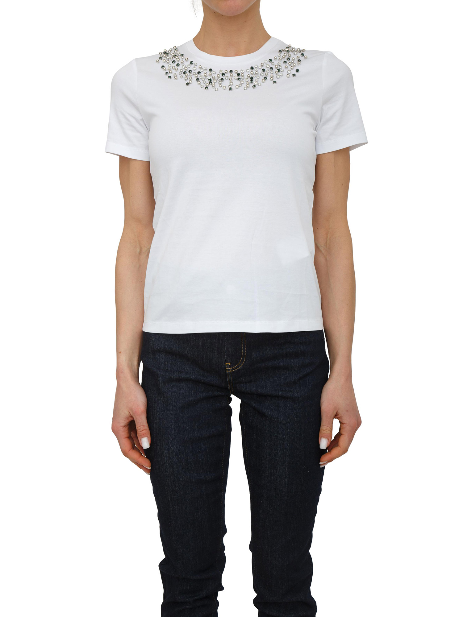 T-shirt MLSSAIO Marella in cotone bianco e cristalli