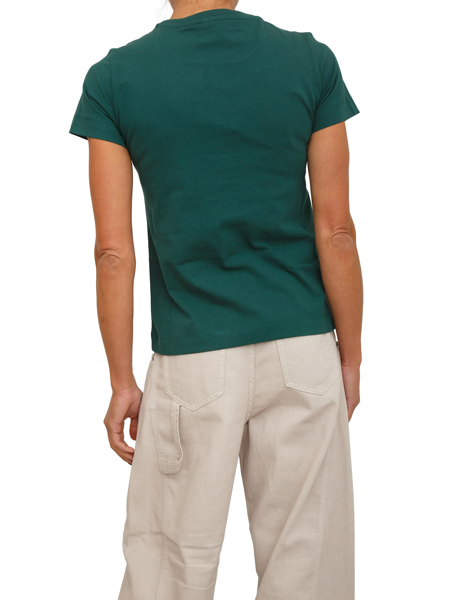 T-shirt Pinko a maniche corte in jersey di cotone effetto old wash con logo ricamato davanti. Perfetta da indossare in qualunque occasione, dalle più formali alle più sporty, aggiungendo un tocco femminile e iconico. La modella è alta 1.72 e indossa la taglia S.