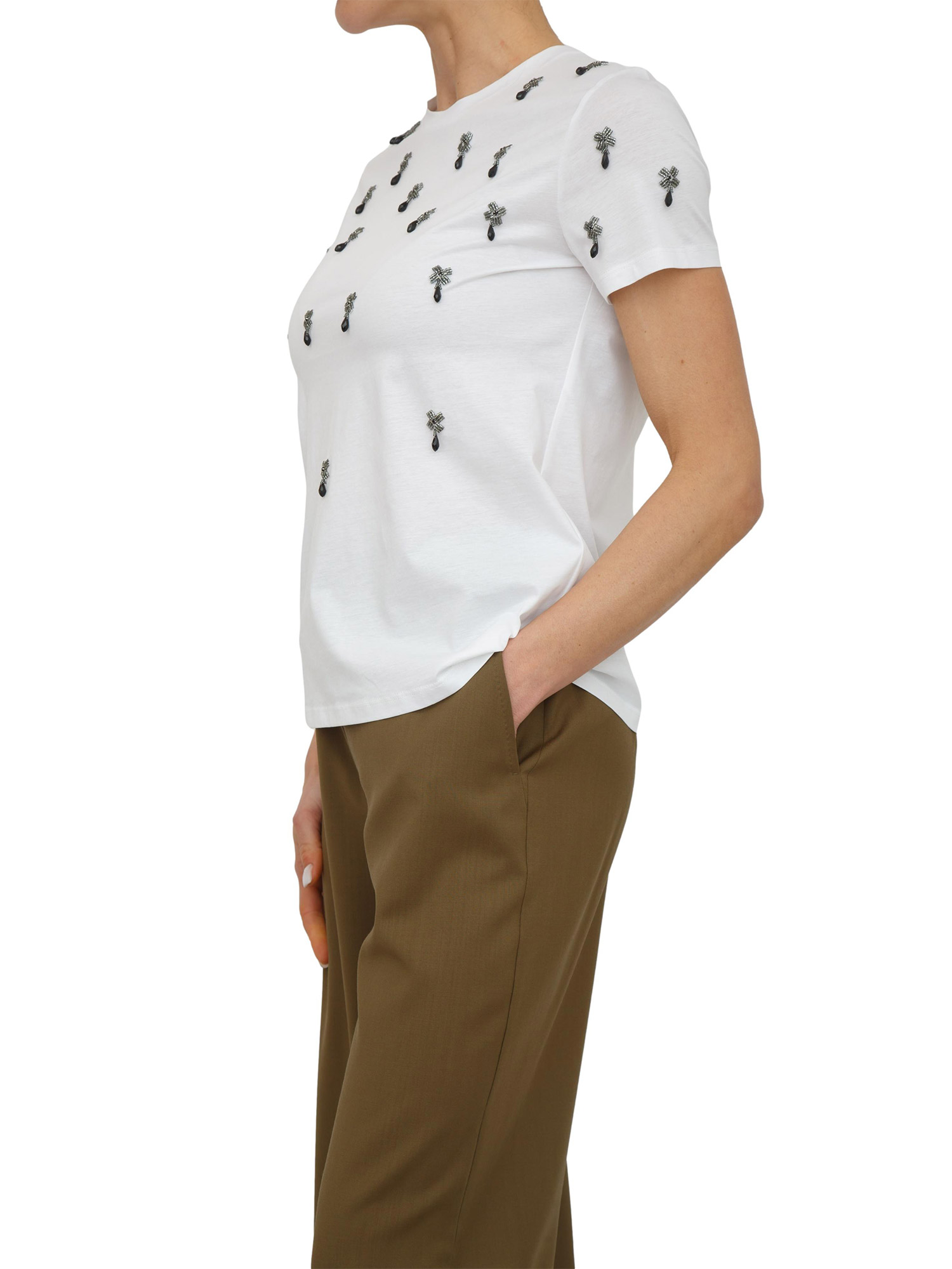 T-shirt Pontile Max Mara in cotone bianco cristalli