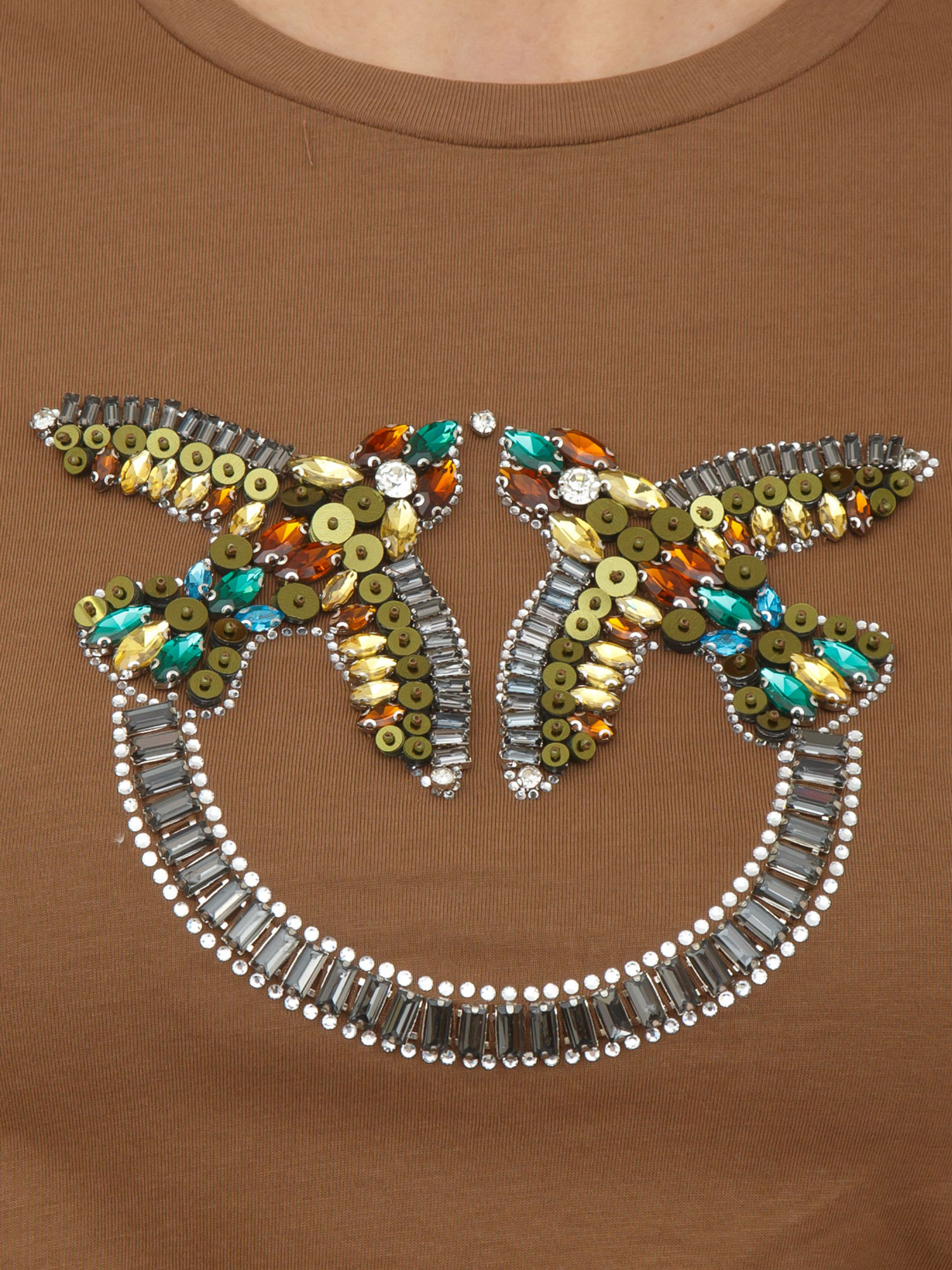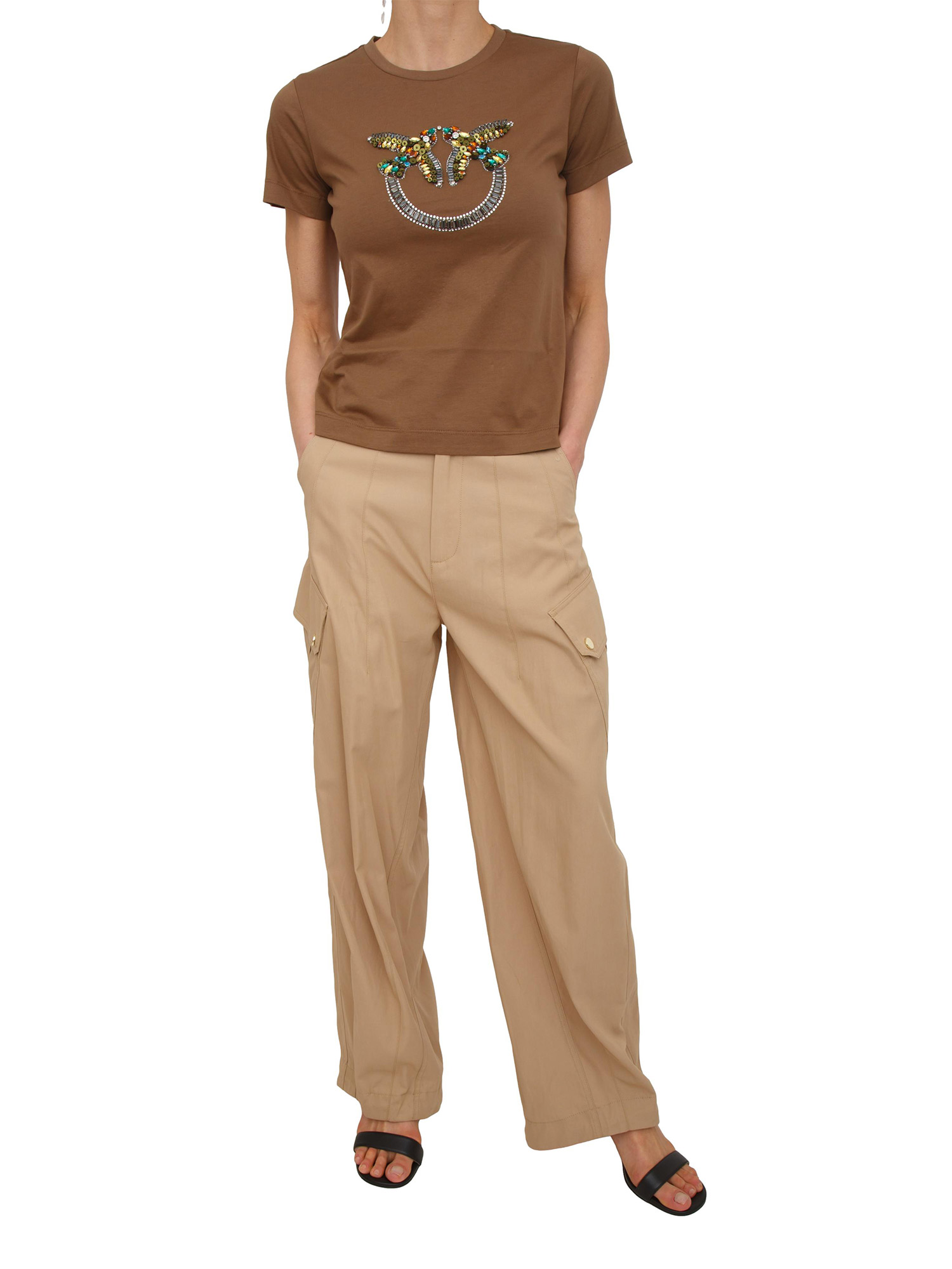 T-shirt "Quentina" Pinko in cotone marrone con logo strass