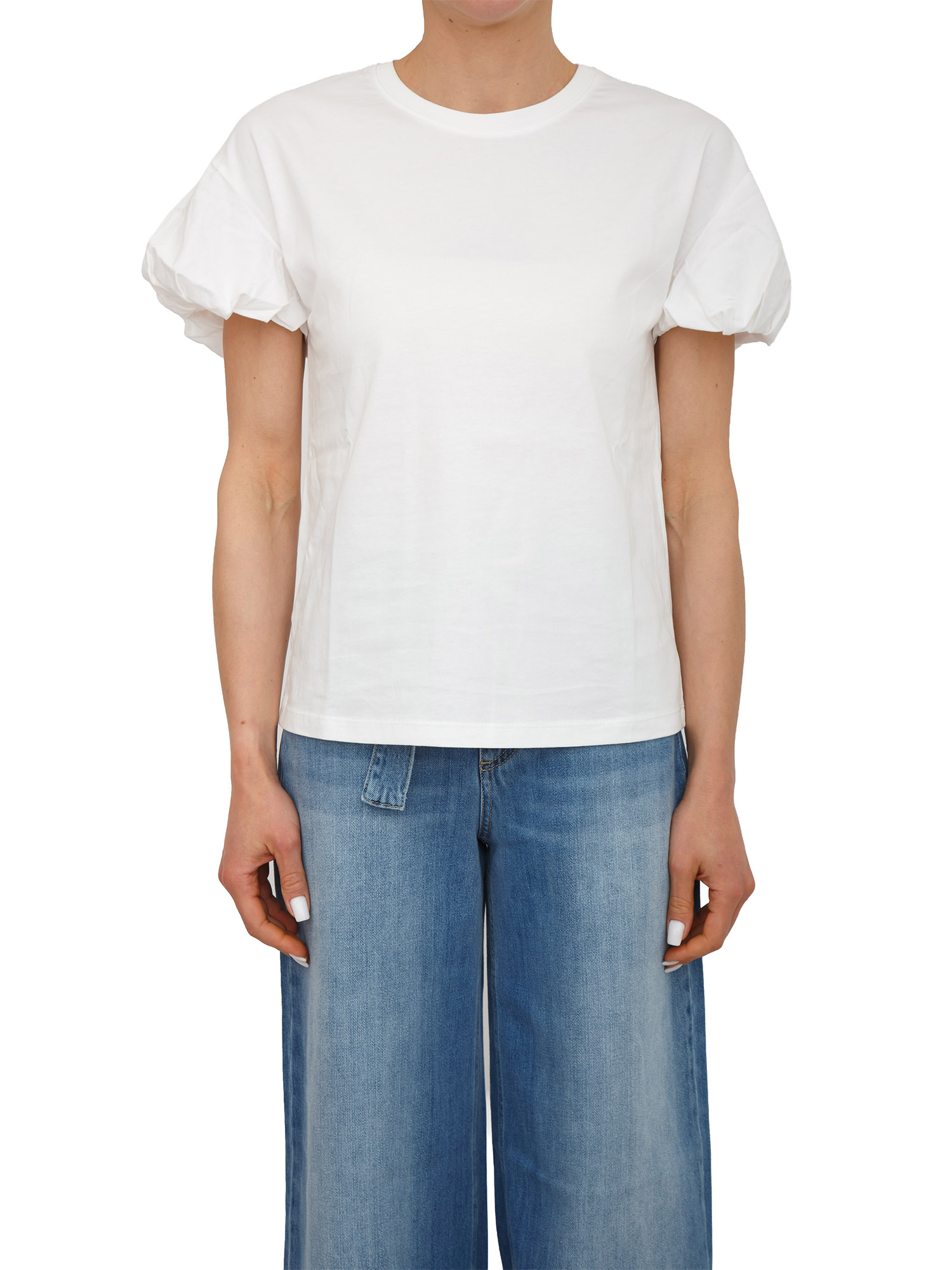 T-shirt Twinset in puro cotone bianco maniche palloncino