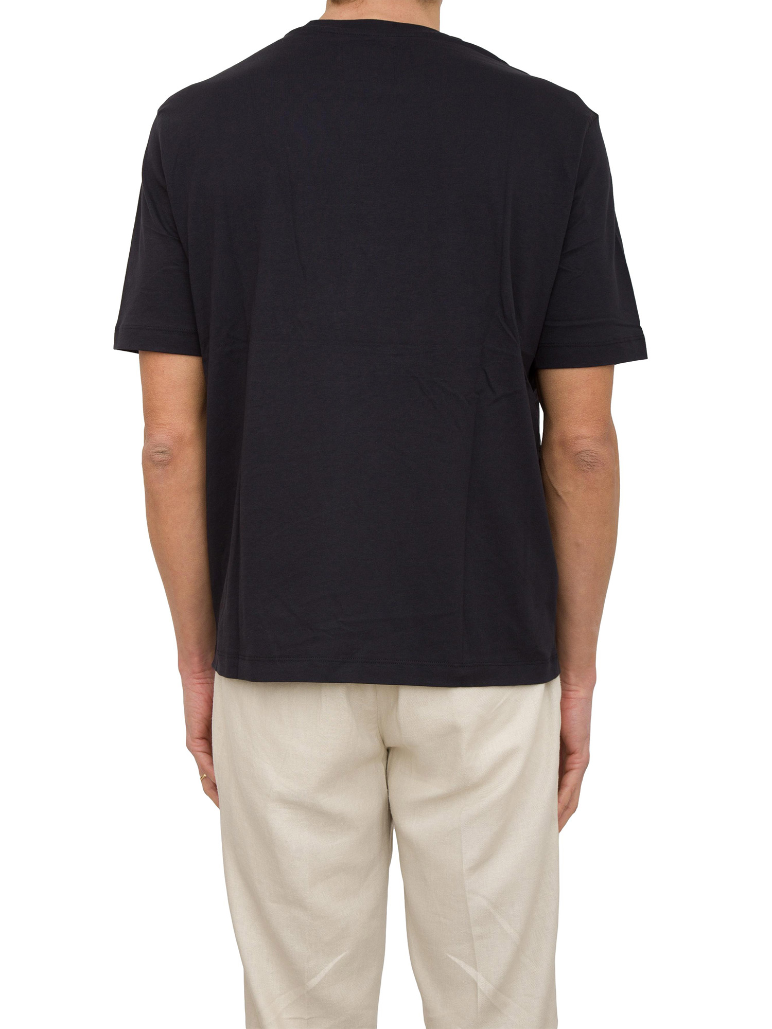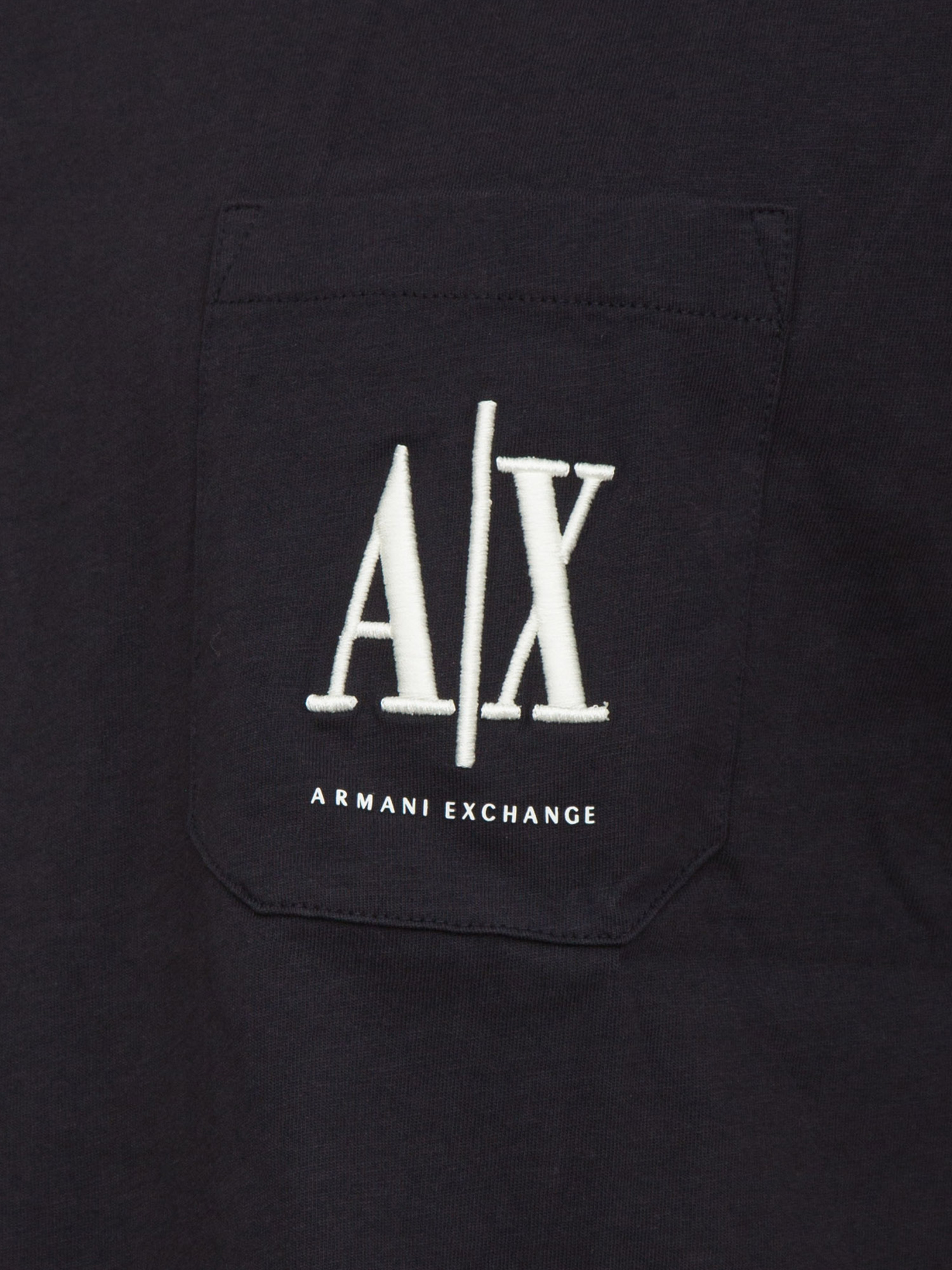 T-shirt uomo Armani Exchange modello girocollo con taschino in petto con logo, tinta unita e vestibilità regolare.Il modello è alto 1.90m e indossa la taglia L.