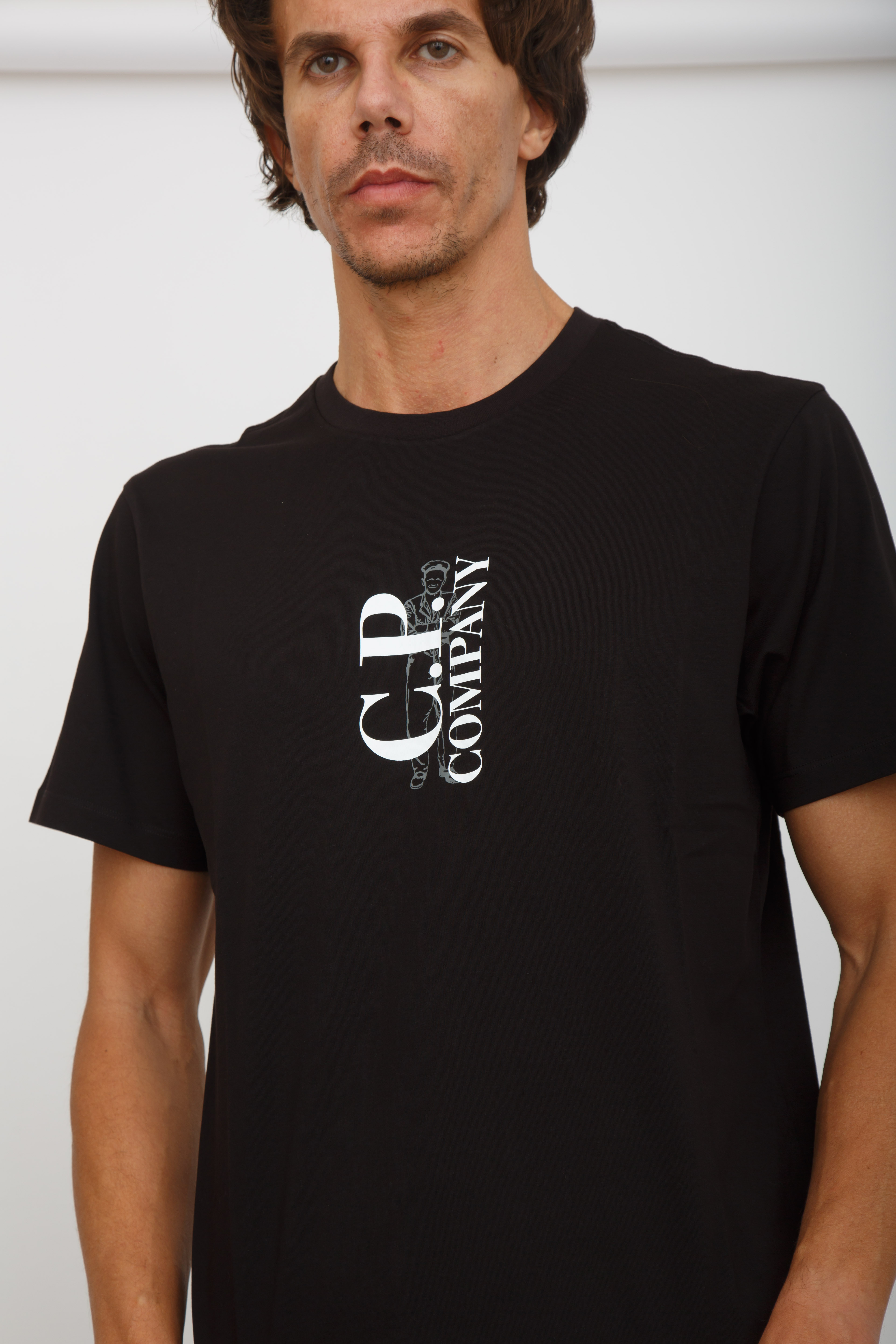 T-shirt a manica corta uomo C.P. Company realizzata in jersey di cotone 30/1 leggero, morbido e traspirante. La t-shirt presenta girocollo a costine e logo serigrafato sul petto. Comfort fit. Il modello è alto 1.90m e indossa la taglia L.