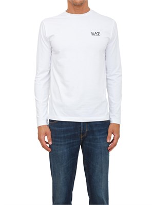 T-shirt a manica lunga da uomo EA7 realizzata in cotone stretch con girocollo e logo in gomma applicato lato cuore.