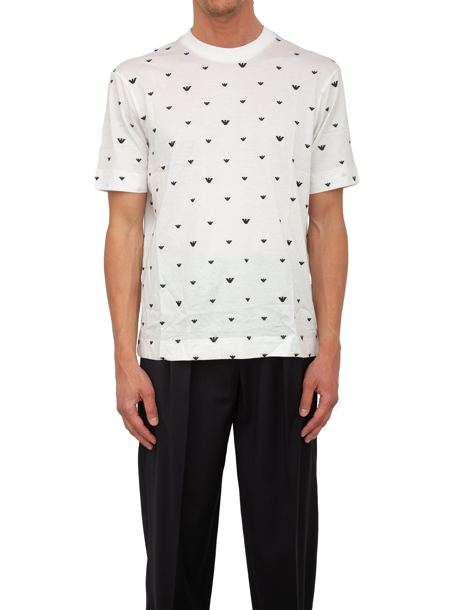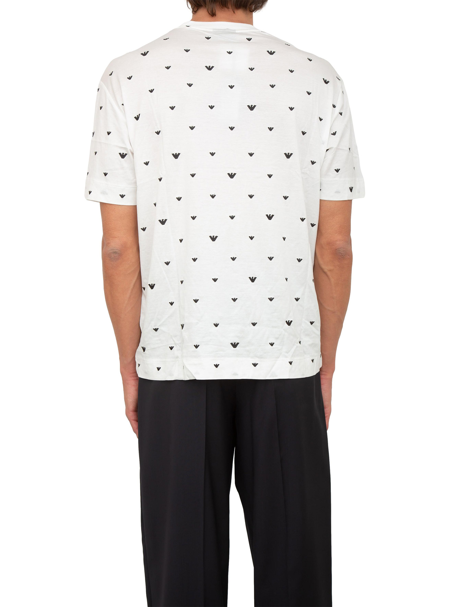 T-shirt uomo Emporio Armani in cotone avorio con logo aquila all-over