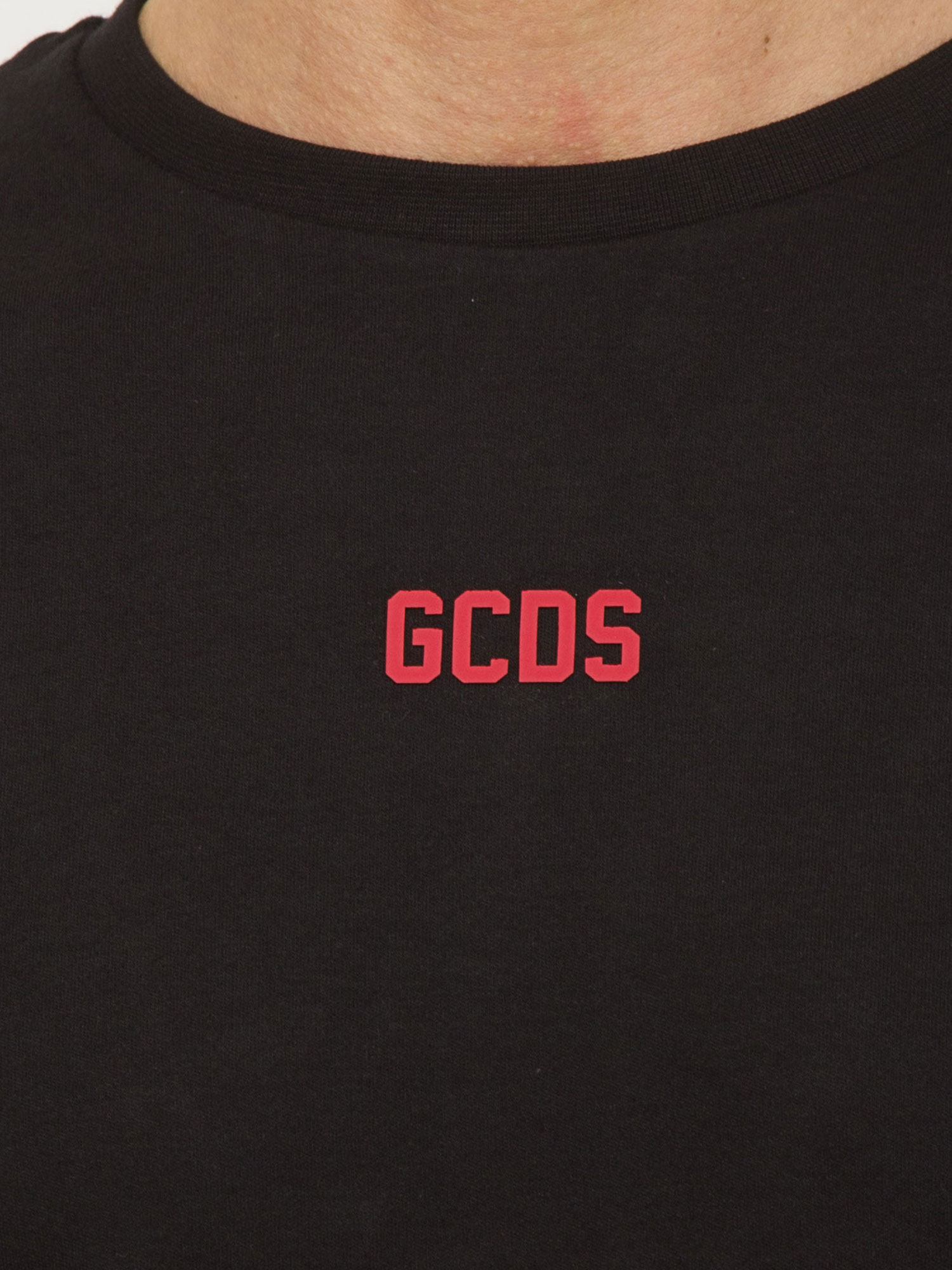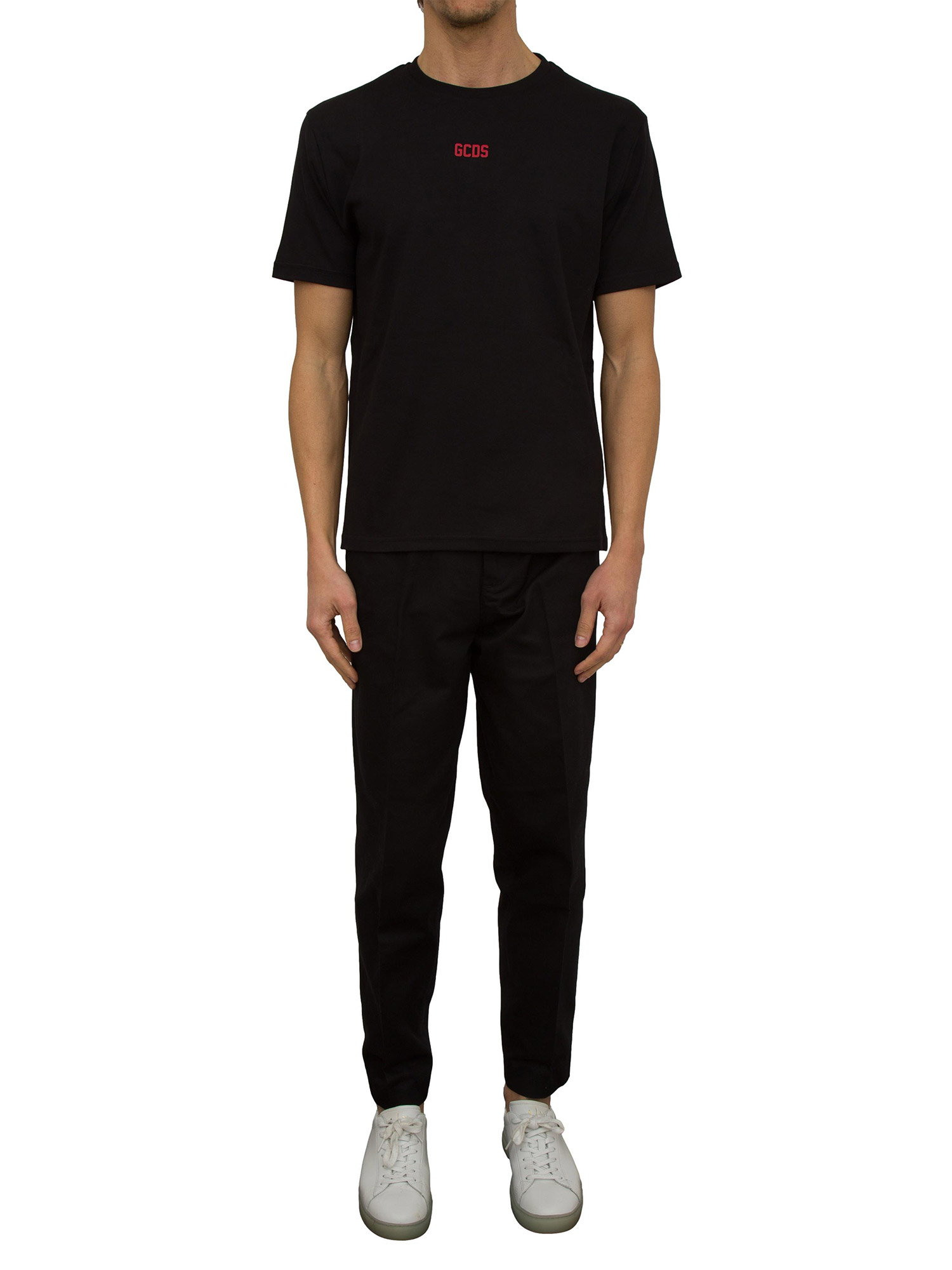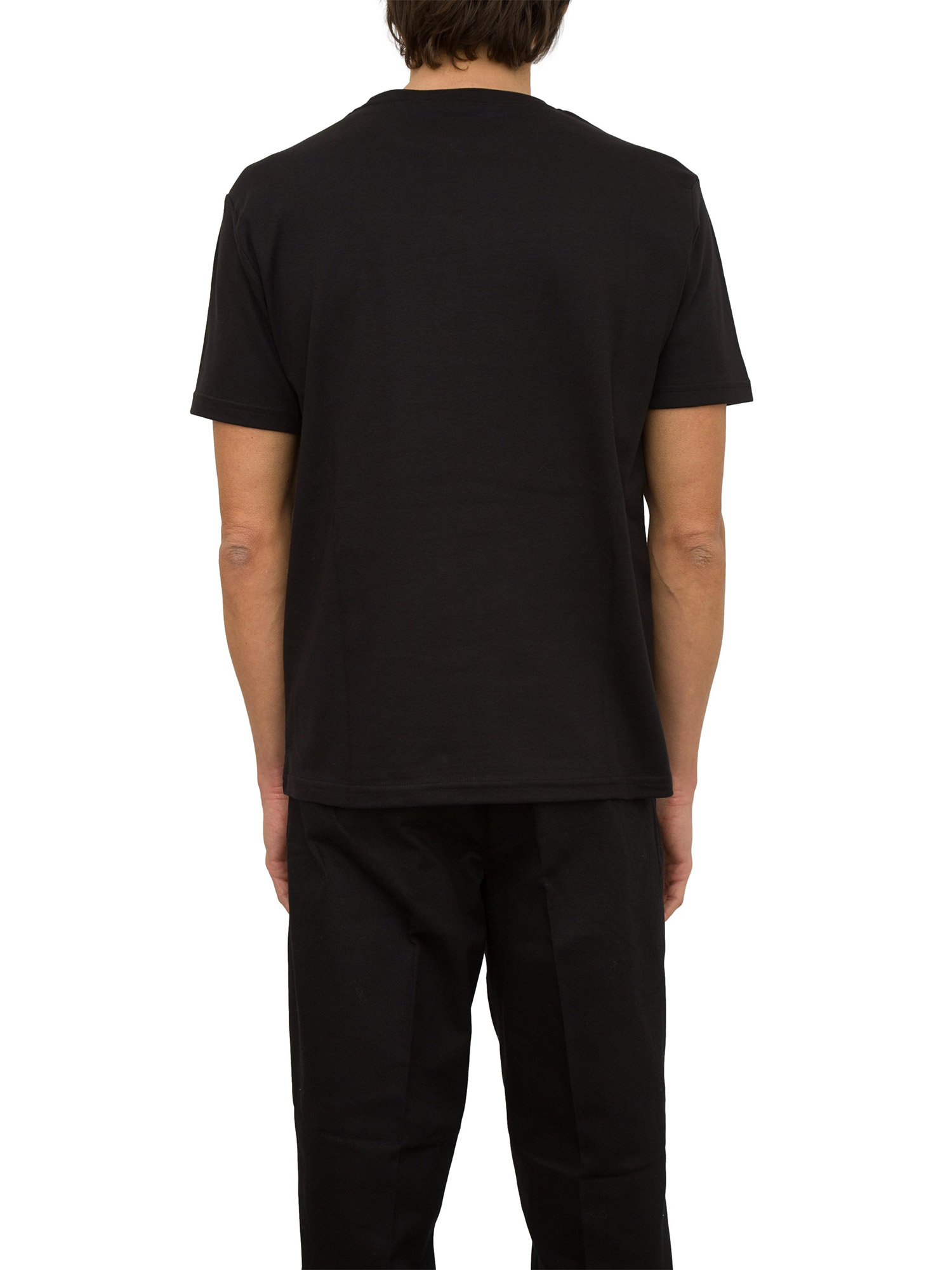 T-shirt in filato di cotone con collo rotondo e maniche corte. Caratterizzata dal logo ricamato sulla parte anteriore.Il modello è alto 1.90m e indossa la taglia L.