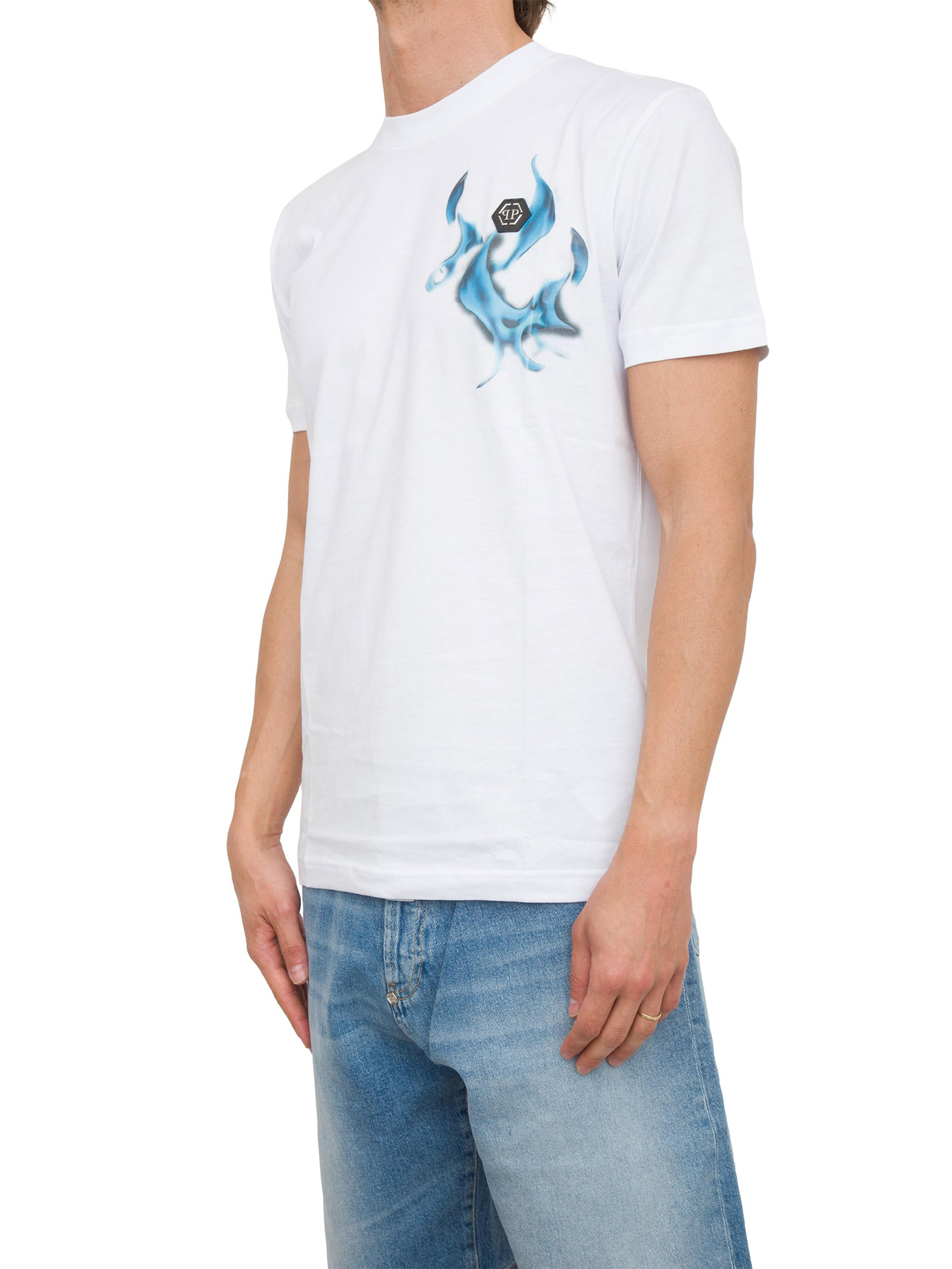 T-shirt da uomo Philipp Plein realizzata in cotone, PP Hexagon su patch di pelle saffiano cucito sul punto cuore, girocollo smacchinato a costina e I bordi sono rifiniti a due aghi.
