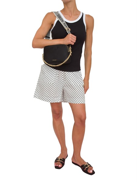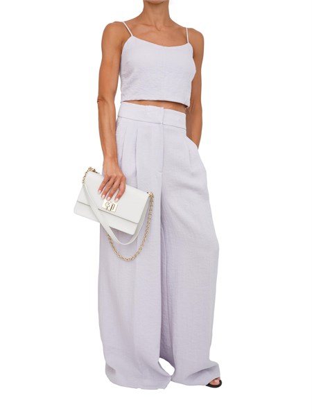 Pantalone dritto in doppio cr[and]ecirc;pe stretch. È caratterizzato da fascione impreziosito da passante logo in metallo dorato.