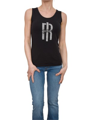 Top realizzato in cotone firmato Fracomina con logo con strass sul davanti, tinta unita, regular fit.