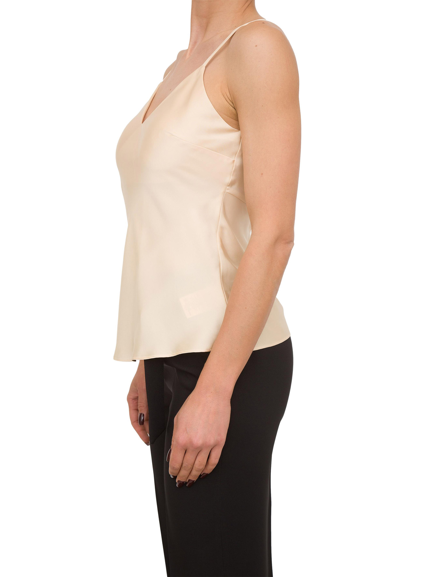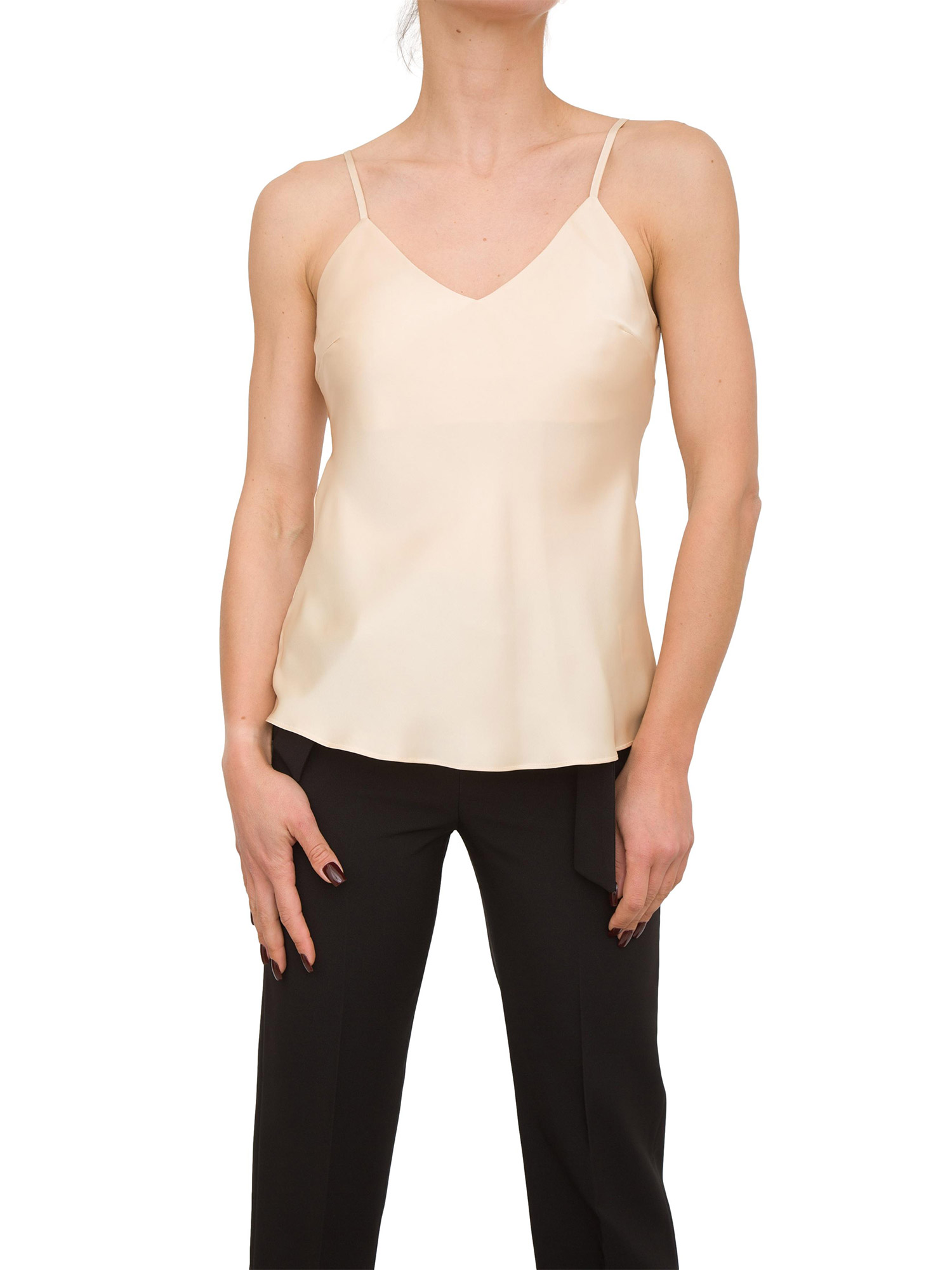 Top da donna elegante, caratterizzato da una linea svasata e da spalline sottili.La modella è alta 1.72 e indossa la taglia XS.