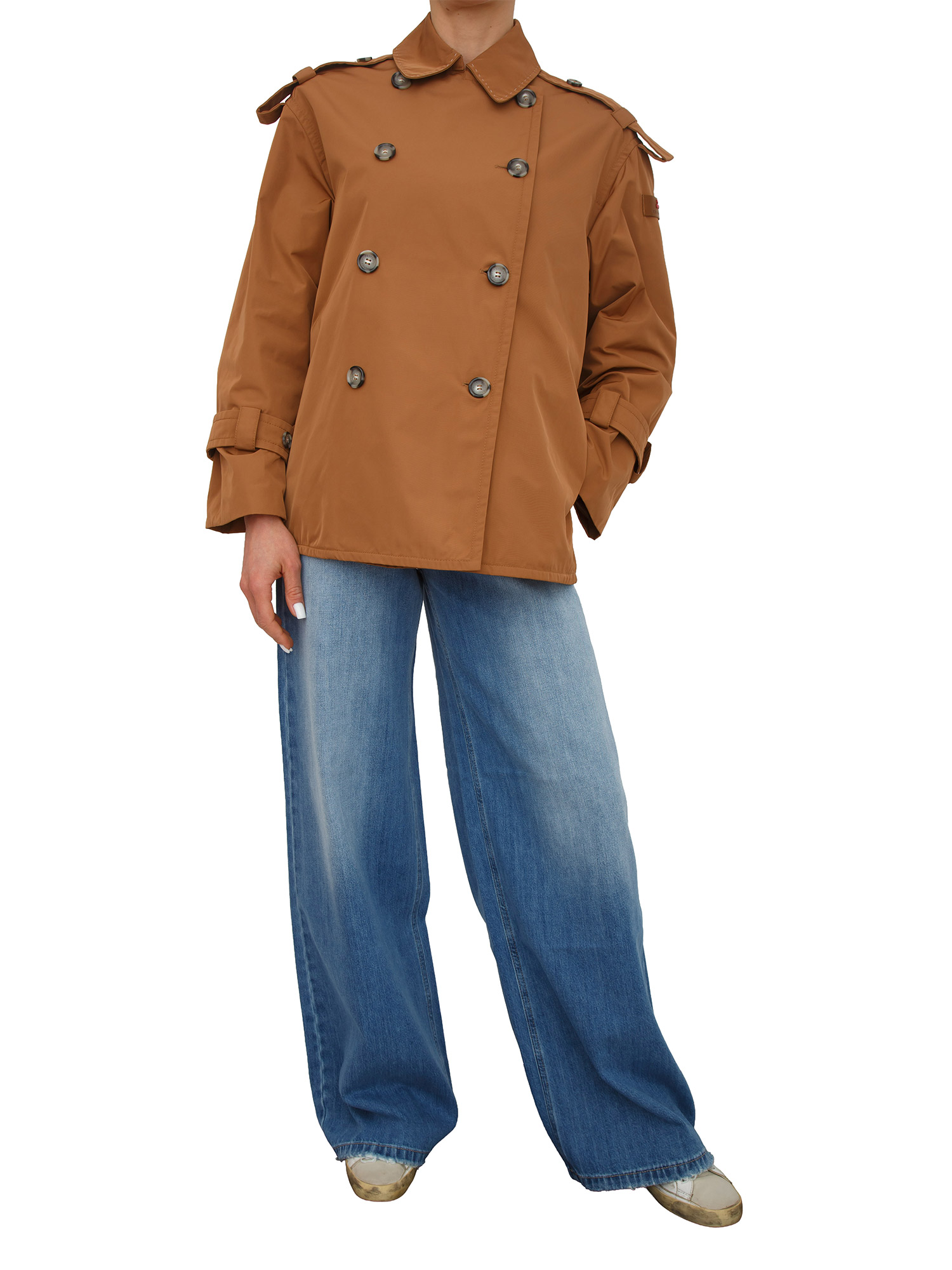 Trench corto Peuterey donna in taffetà marrone