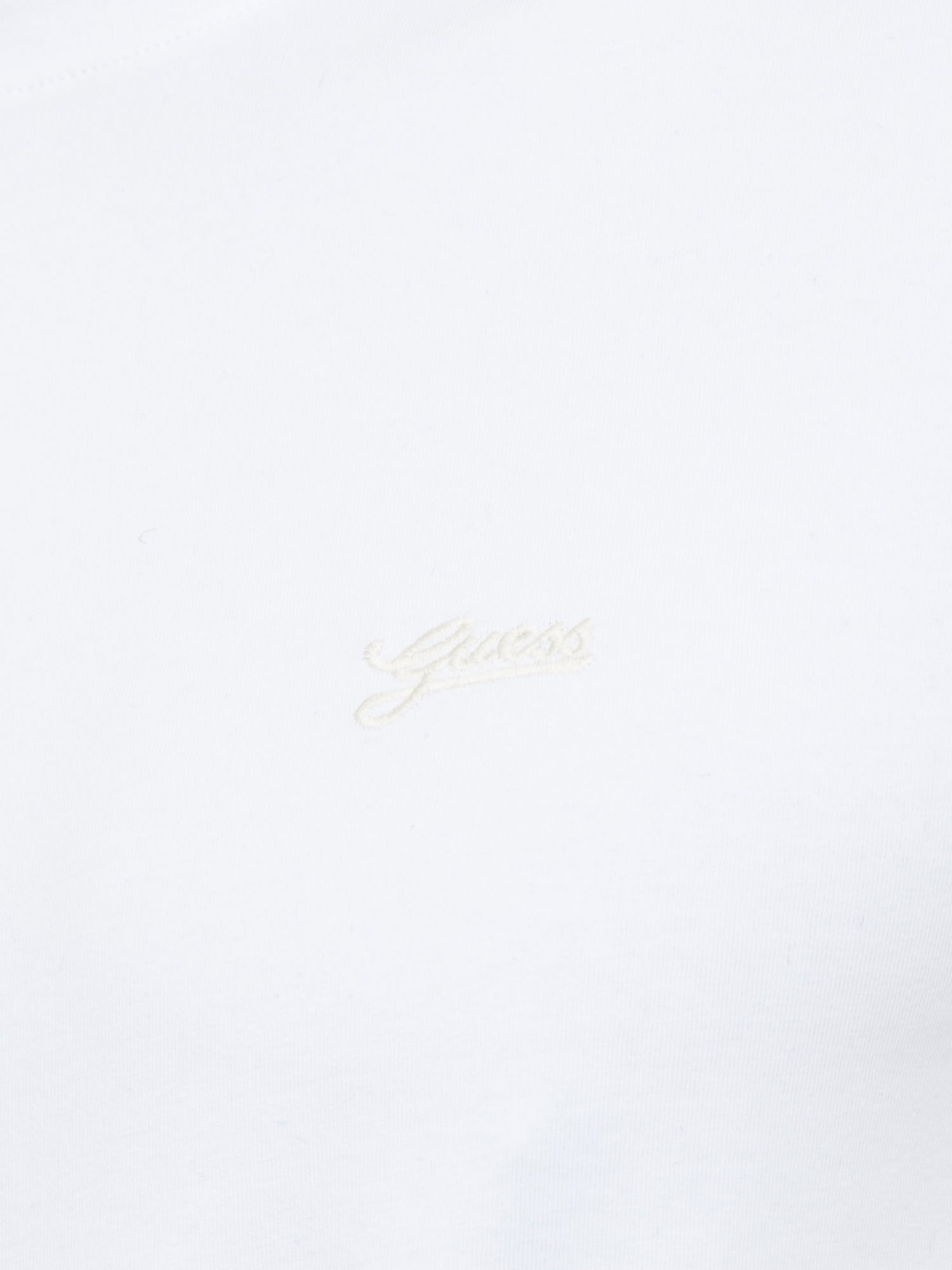 L'eleganza moderna incontra il comfort con questa t-shirt Guess Jeans slim fit in cotone misto. Perfetta per outfit casual e raffinati, vanta un discreto logo ricamato per un tocco di carattere. Ideale per un look sofisticato da passeggiata in città o brunch con amici. Il modello è alto 1.90m e indossa la taglia M.