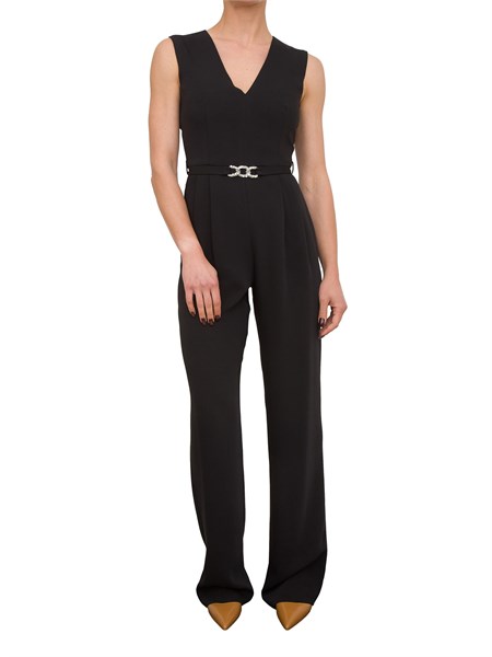 Tuta Marella realizzata in morbido crêpe envers satin che non ha bisogno di essere stirato, linea dritta con taglio in vita, collo a rever, maniche al gomito, chiusura a doppiopetto con gancio e zip nascosti e taschino a filetto sul retro.