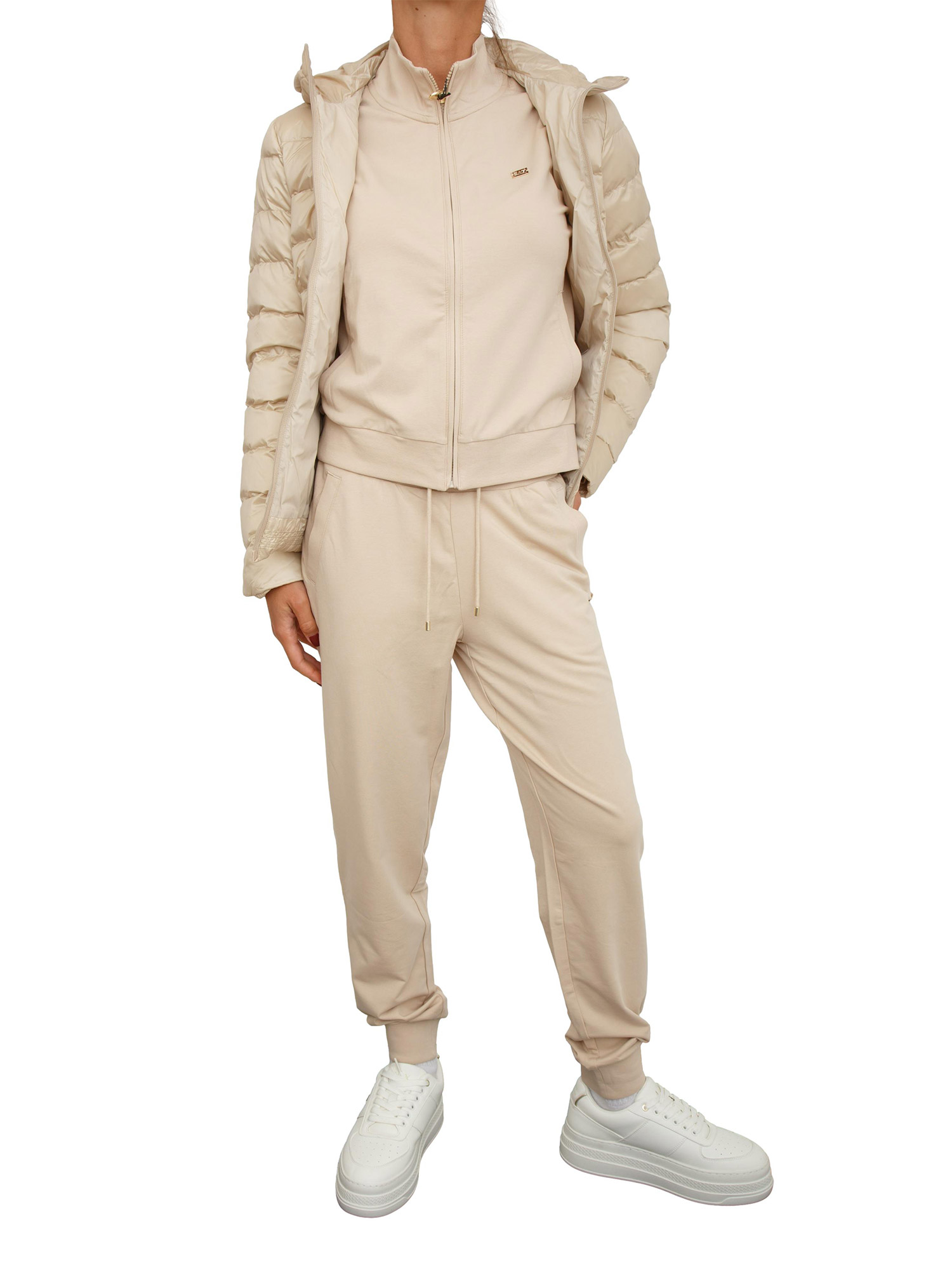 Linee essenziali e pulite per questa tuta EA7 Emporio Armani realizzata in cotone elasticizzato che presenta felpa con collo montante, chiusura con zip e pantaloni jogger con fondo e vita elasticizzati. Perfetta per assicurarti comfort durante le tue sessioni di allenamento e nei momenti di relax. La modella è alta 1.72 e indossa la taglia S.
