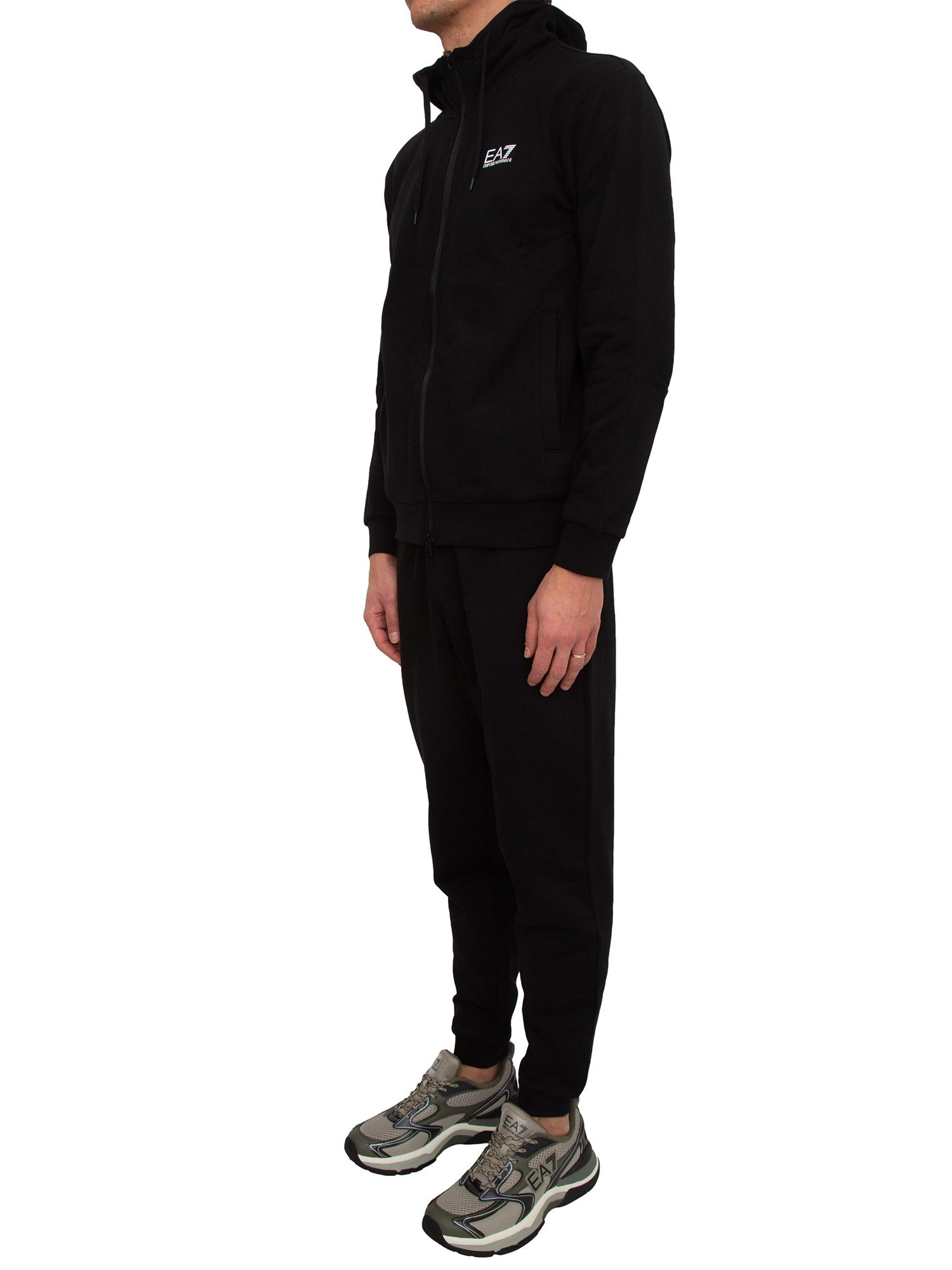 Tuta sportiva nera EA7 con cappuccio Core Identity in misto cotone