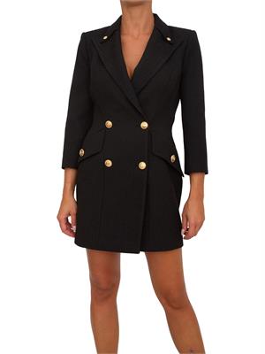 Robe-manteau doppiopetto Elisabetta Franchi in tessuto operato tridimensionale con revers e maniche a 3/4. Applicazione di bottoni in metallo dorato e tasche a patta.