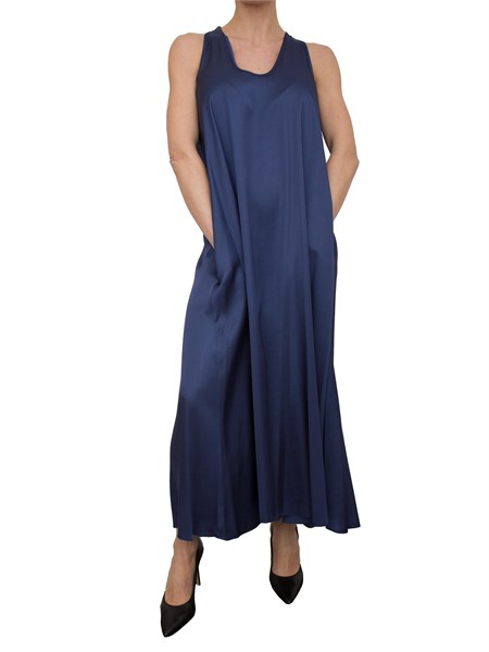 Abito lungo Twinset Actitude in twill fluido verde acqua con ricamo tono su tono